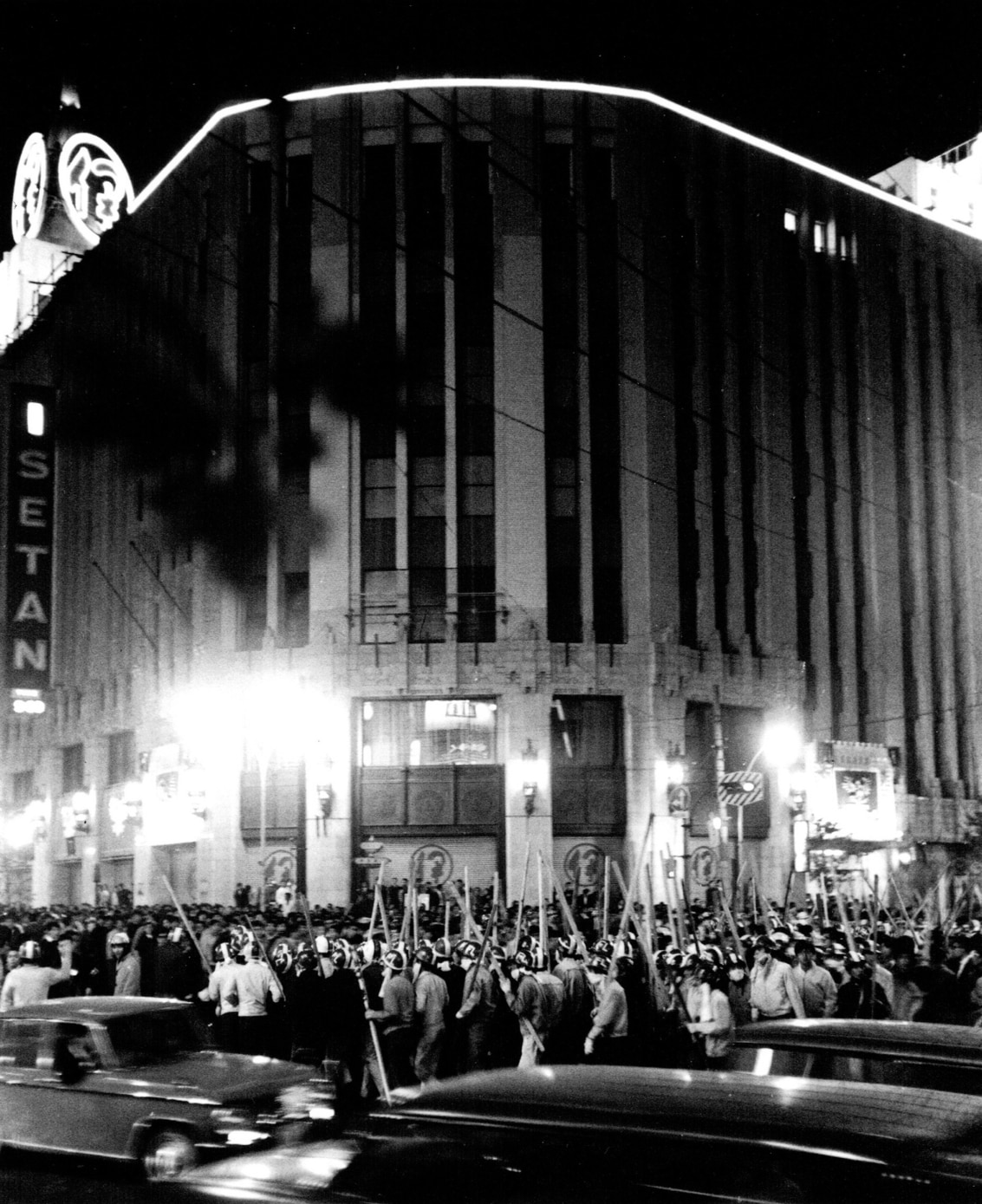 Around 2,000 people, including many university students and members of various New Left groups, gathered outside Shinjuku Station ready to cause havoc and destruction on the night of October 21, 1968. Encouraged by what they were seeing, many onlookers spontaneously decided to get involved. According to newspaper reports, the number of rioters exceeded 20,000 by the end of the night and more than 3,000 officers were sent out to try and stop them. For the first time in 16 years, the anti-riot law was applied, and 743 people were arrested. Trains eventually began running again at 10am the next morning.