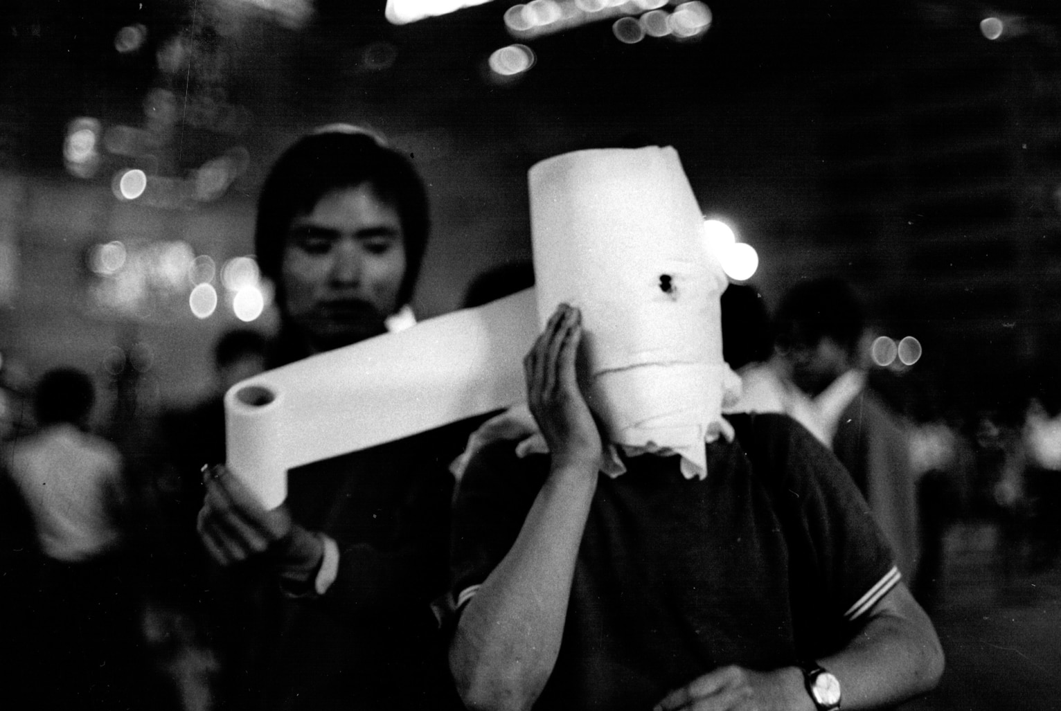 “I spent a lot of time in Shinjuku, going to bars, enjoying the art scene, underground plays and taking pictures of celebrities,” Watanabe tells TW. “I covered peace demonstrations back then, but it was actually just a coincidence that I happened to be in the area at the time. When the trouble began I decided to start taking photographs. One of the first things I remember was the police confronting and hitting demonstrators in front of the station. A man who was standing next to me turned and said, ‘The police struck first, right?’ Looking closely, I then realized it was Nagisa Oshima.”