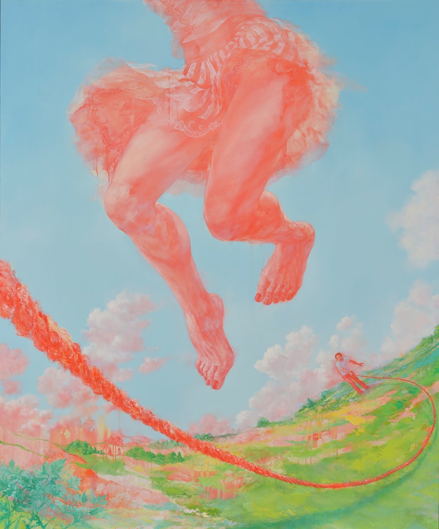 Grand Prix, “Each time you jump, the rising ground is different than the time before,” Hiromi Sengoku, acrylic and oil on canvas, 2017