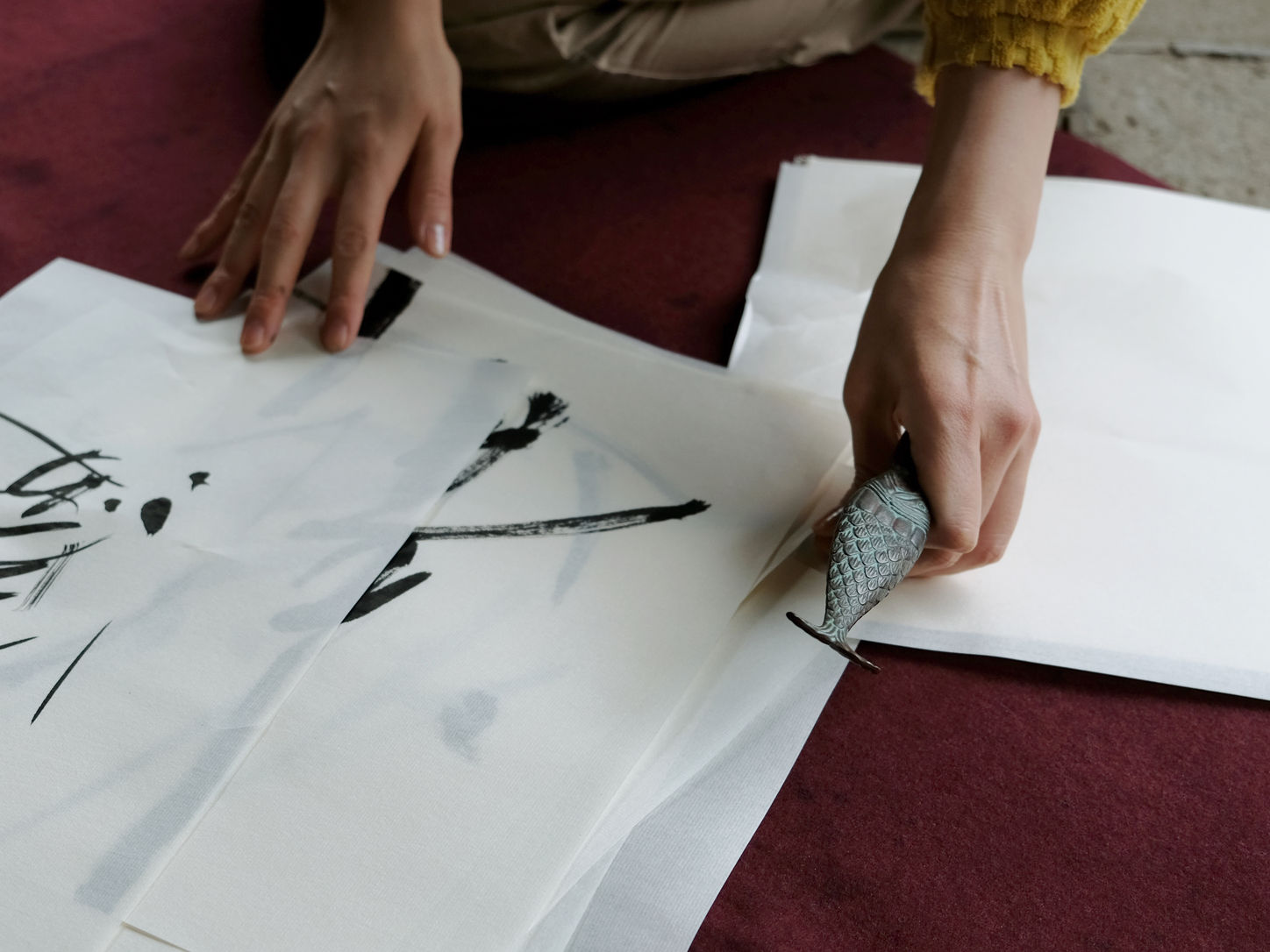 Each day can be completely different! I supervise lessons at a calligraphy school, so most days I go teach there and then I work on commissions from private clients. I also work on pieces for exhibitions. Most of my students are young Japanese children, about preschool-aged to middle school-aged. I also teach adults, usually from abroad, in groups or private lessons.