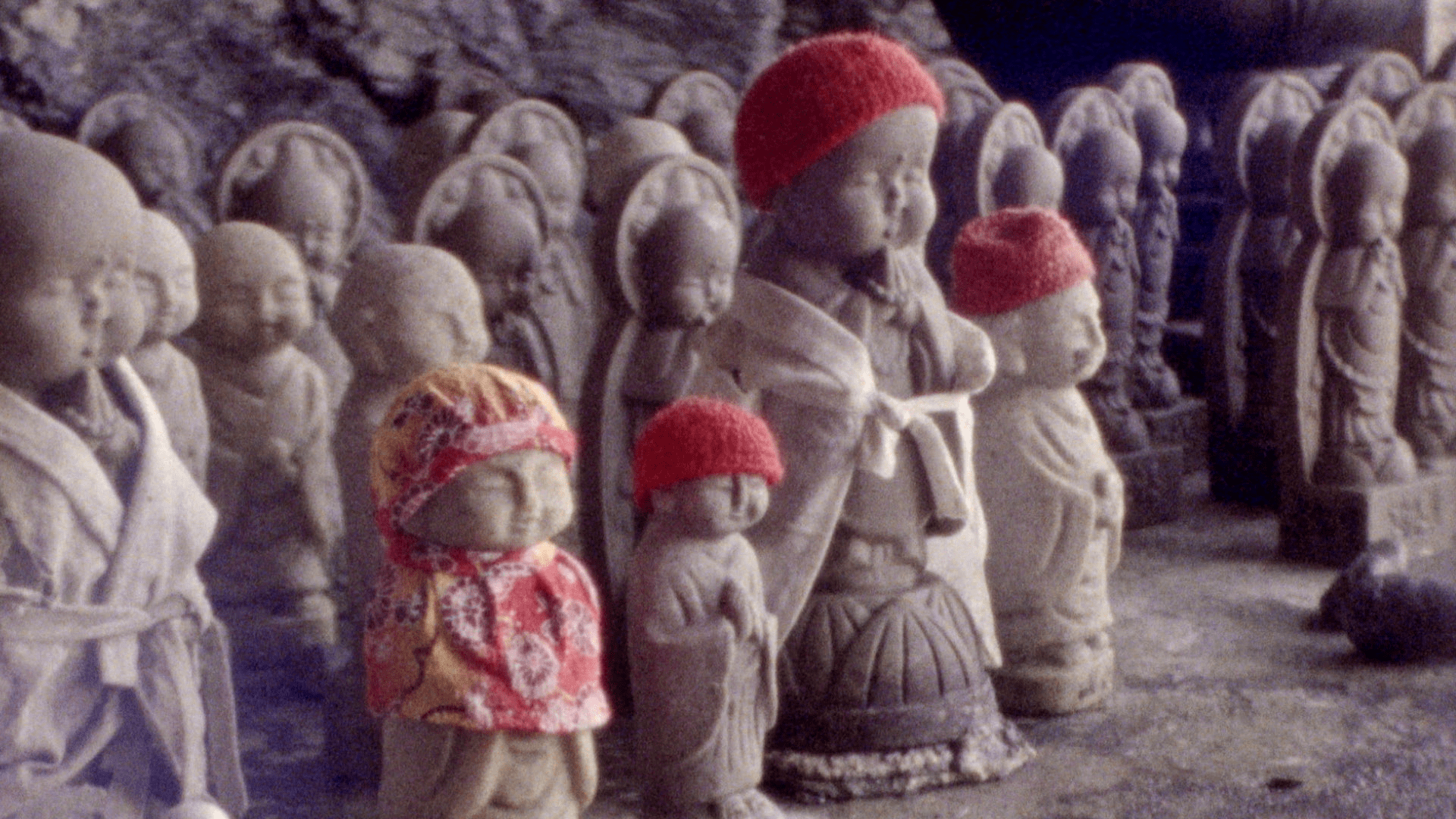 A lot of the live-action scenes in Mizuko were filmed in Kamakura, home to some of the most famous Buddhist temples in the country, but also dozens of lesser-known temples and shrines. We traveled from temple to temple on bicycles. The Super 8 camera wasn’t much bigger than a soda can and we carried it, along with a tiny tripod, in one backpack. This spontaneous and low-key way of filming was so preferable to me and Katelyn, after years of NYU film sets where the focus always seemed to be on super high production value and a lot of testosterone. I also had a chance to travel to an incredible mizuko kuyo site on Sado Island in Niigata. I had read about this location in William LaFleur’s book about mizuko kuyo called Liquid Life. There, I finally had the chance to focus on performing my own ritual. The place is called sai no kawara or “the river of souls.” It’s not maintained by anyone but the visitors who go there, inside of a cave nestled in some cliffs right up against the ocean. Along with some personal artifacts, I brought my own mizuko jizo statue, which I made myself out of clay under the guidance of an incredible Buddhist monk in Tokyo. My clay statue wasn’t fired so I left it in this ocean cave knowing that it would eventually weather down into mud and return to the earth.
