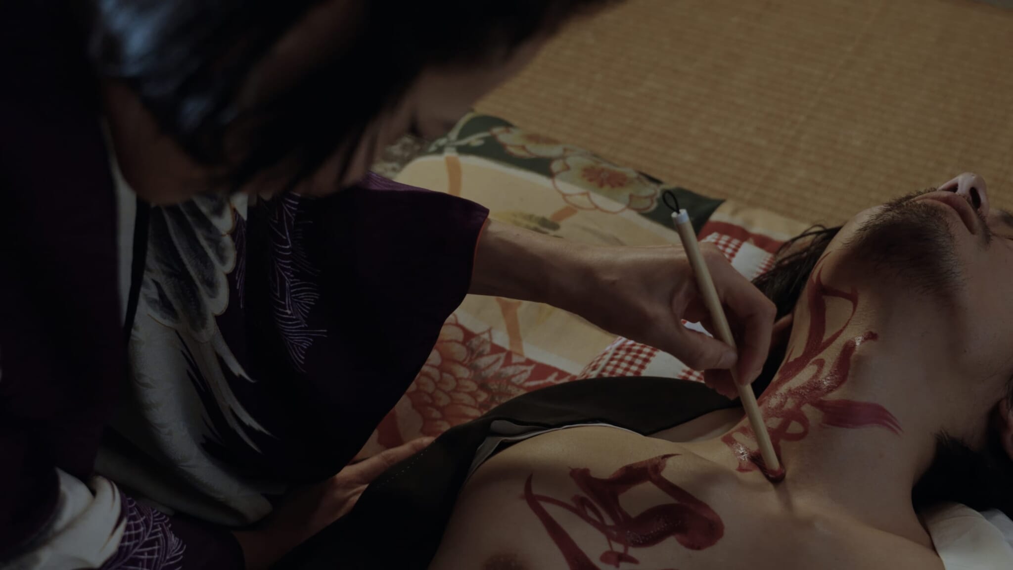 The first installment, “Tales From The Bridge: The Artist & The Muse,” shot in Tokyo’s Nakano district, follows a calligrapher and her muse through a wordless narrative about connection and intimacy. Over the course of seven minutes, the viewer watches as The Artist abandons her calligraphy paper, opting instead to leave her designs on the skin of The Muse, culminating in an ecstatic embrace.