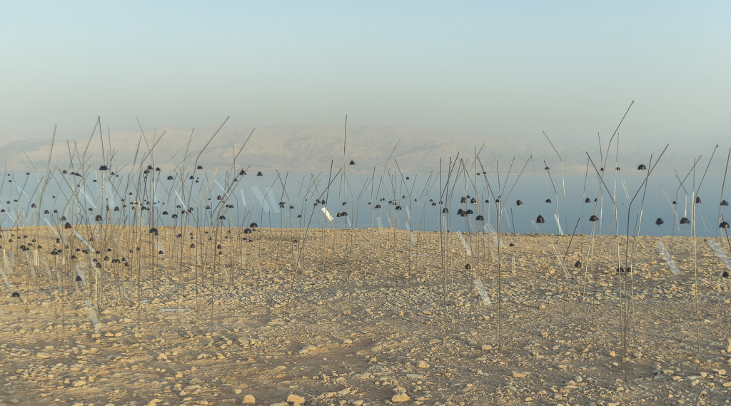 Behind Boltanski runs a 10.5-hour loop of a scene he shot on the rocky shore of Israel’s Dead Sea. The Biblical sea, whose water level is dropping by 3m per year, was home to the world’s first health spa – as well as Sodom and Gomorra – and Aristotle once rhapsodized about its remarkable waters.