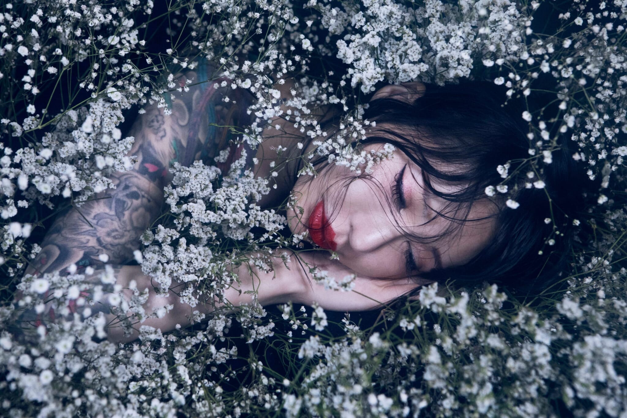 But even as he grew more established as a flower artist, Shimura began to chafe at the title. He felt it didn’t accurately convey the work he was doing. “In 2018, I did my first exhibition, with a special effects makeup artist called Amazing Jiro,” he recalls. “Around then, I told him I didn’t like the title ‘flower artist’ and he thought about it and asked, ‘How about “flower collaborator?”’”