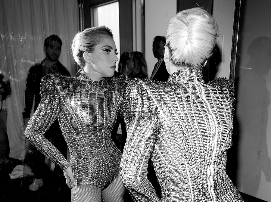 Lady Gaga backstage before her halftime performance at Super Bowl LI in Houston, Texas (Kevin Mazur/WireImage)
