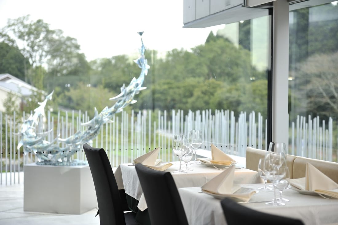 After visiting each of the eight galleries, you can dine at Hanau, the highly regarded Italian restaurant located within the museum. There is a lunch course meal for ¥2,800 that comes with an appetizer platter, a choice of a main pasta dish, a dessert and coffee or tea. The restaurant’s large panoramic window faces the Forest of Showa park. The menu changes frequently, but expect to taste a wide variety of seasonally fresh foods. My appetizers included basil and spinach couscous, toasted corn mousse, seasonal vegetables, and marinated shrimp. The main dish was a rich pork and eggplant tagliatelle, and the dessert was cherry ice cream with pistachio tiramisu. Staff here are friendly and professional, and the food is presented artfully.
