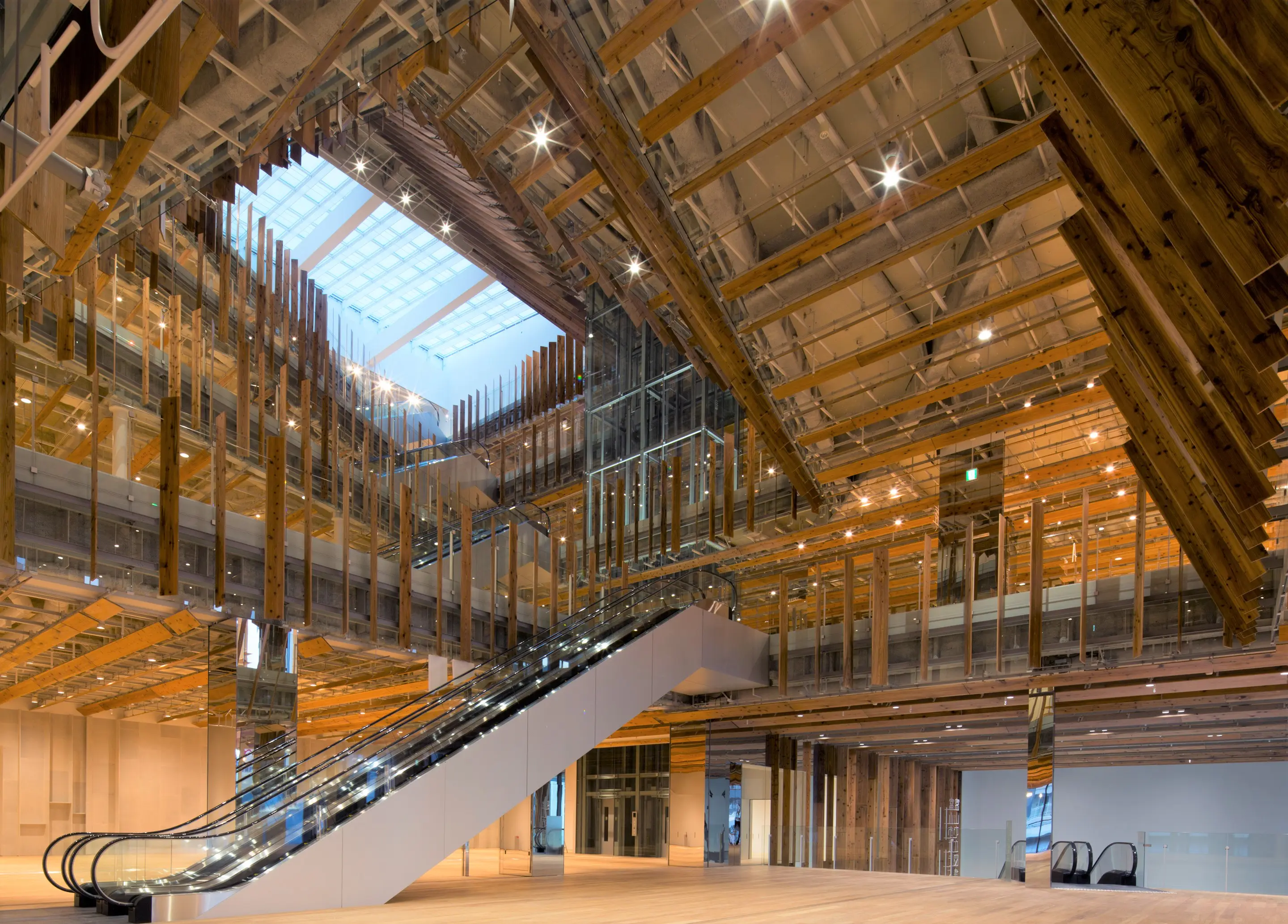 The dynamic Toyama Kirari civic center pays architectural homage to the area’s glassmaking tradition. Its facade is inspired by the massive ice walls of the Tateyama mountain range. Inside, soft light pours through an atrium built with locally produced cedar boards, glass and mirrors. Riding the escalator or transparent elevator through the dazzling space is an experience of art in itself.