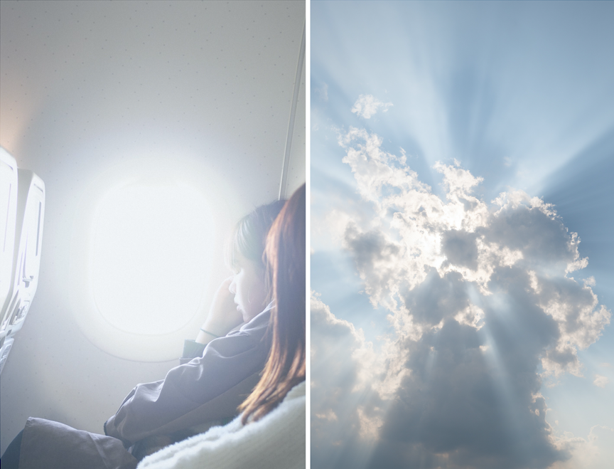 Kirsch began pairing his images as diptychs, creating an unexpected connection and relationship between two seemingly unrelated photos. The effect is mesmerizing. What was once simply a snowy Hokkaido landscape with figures retreating in the distance is now a world of yearning and hope seen through a pair of blue eyes. Glistening yolky fried eggs transform into a memory of a breakfast shared; perhaps one that will never be shared again. Jacob’s Ladder is that blissful moment when you’ve been snug in an airplane seat for hours and can no longer keep your eyes open.