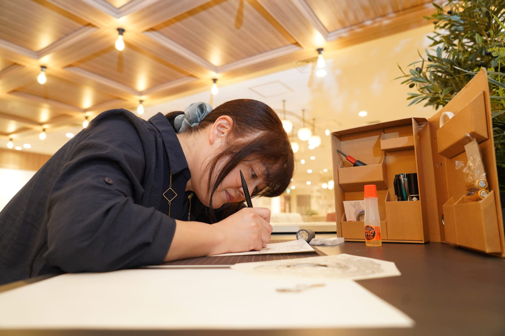 Additionally, she has a secret she thinks will encourage more people to pick up paper and a craft knife: glue. “It’s impossible without glue,” she says. “I keep a tube on hand for any mistakes when I’m cutting; if I cut through something by accident, I simply glue it back again. You can’t see it, but there is so much glue on my work.” She giggles as she holds up a tube to illustrate her point, declaring “I wouldn’t be able to create without it.”