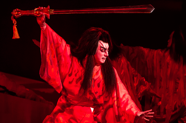 His method was to create programs that featured short acts from traditional kabuki plays kabuki treatments of traditional Japanese folk tales. It was a long time in coming, but he brought his vision to reality in 2013, with a series of shows called ABKAI. Rather than playing at a large, traditional kabuki theater, Ichikawa took the show to Theatre Cocoon, Shibuya. Ichikawa took to new heights as he returned to a more traditional kabuki venue at Shimbashi Enbujo. Held aloft by wires, his airborne performance thrilled audiences as he and his company brought the famous kabuki story “Yoshitsune Senbonzakura” (Yoshitsune and the Thousand Cherry Trees) to life.