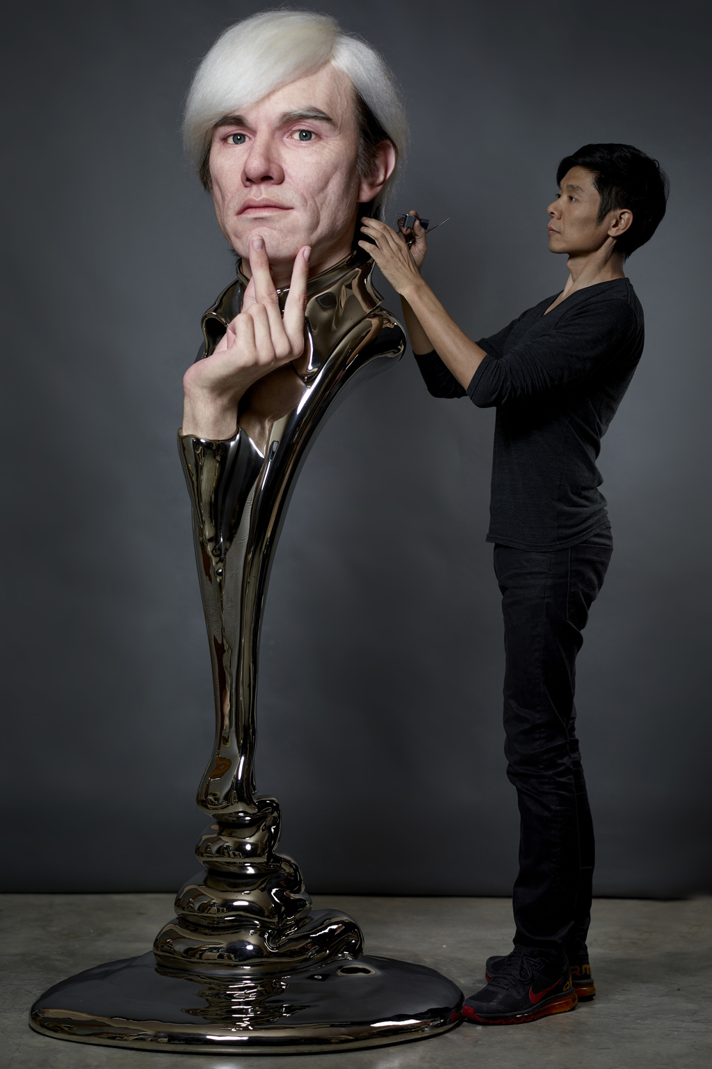 His character changed after he was shot [by radical feminist Valerie Solanas], and I thought it would be interesting to create two stages of his life; before and after that incident. From this project on I also started paying greater attention to the pedestal to create a whole art piece. With the Warhol sculpture it looks like ink being poured onto a surface, which is something he did as part of his silk screening process. I also wanted to convey his ego melting away as he got older.”