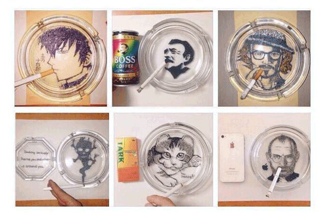 His Twitter feed is a string of thoughts and thank you’s to his rapidly growing fanbase, with his own favorite art pieces, made from tobacco and ash, featured throughout. He shares manga character sketches and his artistic process, and even goes into detail about his most impressive piece, the “3-layer Doraemon Cup.” The short animation, all made from three plain paper cups which the average person probably has stacked in a bag beneath their kitchen sink, took Japanese Twitter by storm, earning hundreds of thousands of retweets.