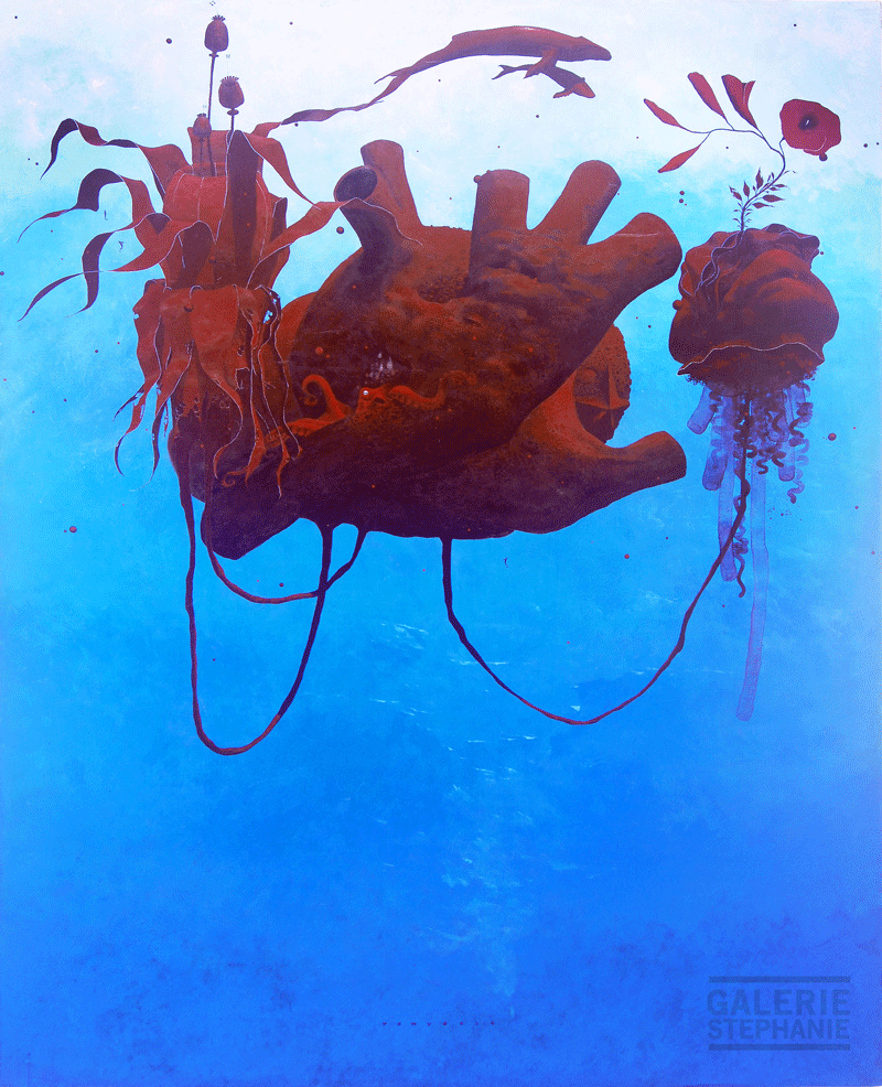 Looking on his works, you would expect that he had been heavily influenced by Surrealists and proto-Surrealists like Salvador Dali, Giorgio de Chirico, and Hieronymus Bosch. But when I asked him who his mentors were, Villaseran, who was raised on an early diet of sword & sorcery and science fiction, mentioned the names of three graphic artists—Ian Miller, Dave McKean, and Kent Williams—who walk the line between fine art and fantasy, and between comic books and the conservatory.