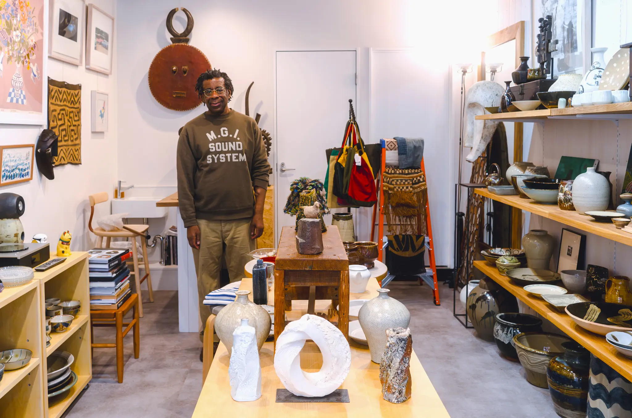 Last year, Ellis and Kitamura expanded their vision further with a new dedicated gallery space a few doors down. Open on Saturday, Sunday and Monday, Mogi & Mogi Gallery Shop serves as a showcase for one-off, standout pieces, and often spotlights overlooked voices: women artists sidelined by Japan’s male-dominated craft history, and older makers with overlooked archives. Despite collecting for so many years, Ellis fondly recalls the first masterwork he obtained — a bowl by the renowned mingei potter Shoji Hamada. “I had encountered mingei objects before, but this was something else. It was the first time I thought, ‘If I don’t buy this, I won’t be able to sleep!’”
