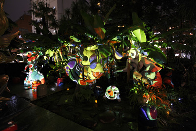 Planned for the harvest moon of last Sunday, September 30, the one-night-only event features projections of Taro Okamoto‘s works in the garden of the Taro Okamoto Museum of Art, transforming it into a wondrous, illusory world. In case you are not familiar with Okamoto, he was an abstract and avant-garde artist, renowned for his paintings and sculptures. He studied in Paris and was deeply fascinated by mystery and the occult, which was reflected in most of his work.