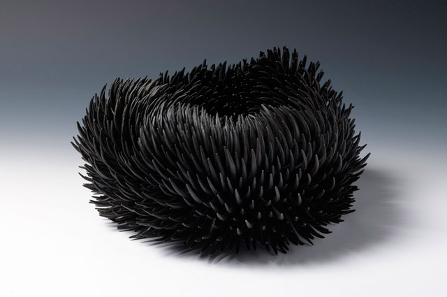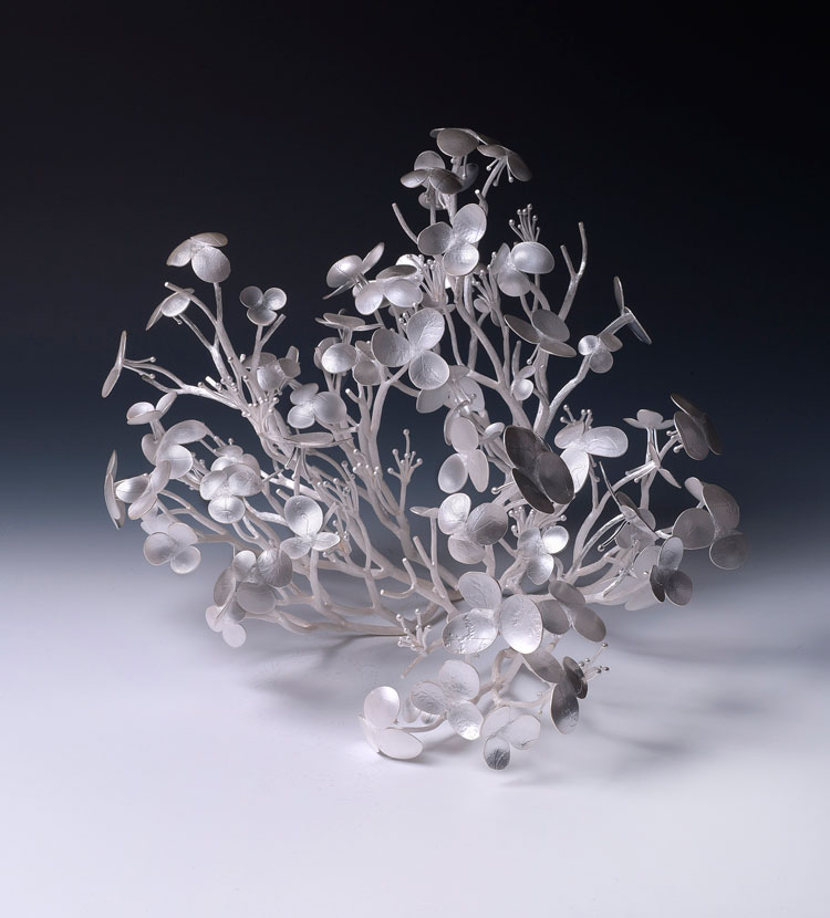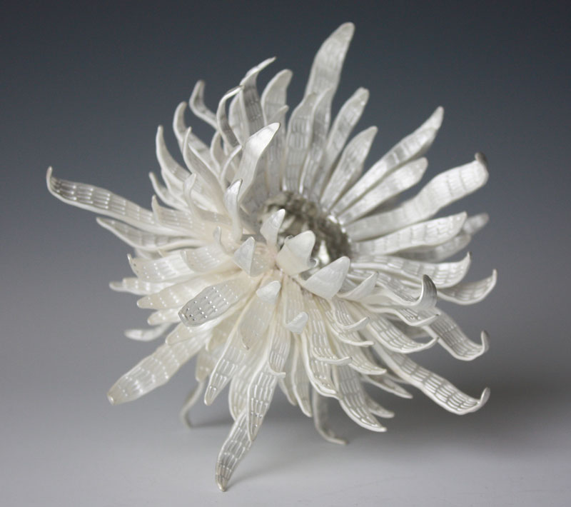 At the time when she graduated from Musashino she was not quite sure what exactly she wanted to do; as she explains it, “I knew what I was doing was something unique, but I could not see—well, quite frankly—how to eat with what I was doing!” This led her to research international artists and through her professor from Musashino she was introduced to Hiroshi Suzuki who had been studying at Camberwell. After making a visit to London and seeing Suzuki at the New Designers Show, she was so impressed by what she saw that she decided to apply to study at Camberwell. She saved money by working at a fabricators and was able to gain a conditional offer to study in London.