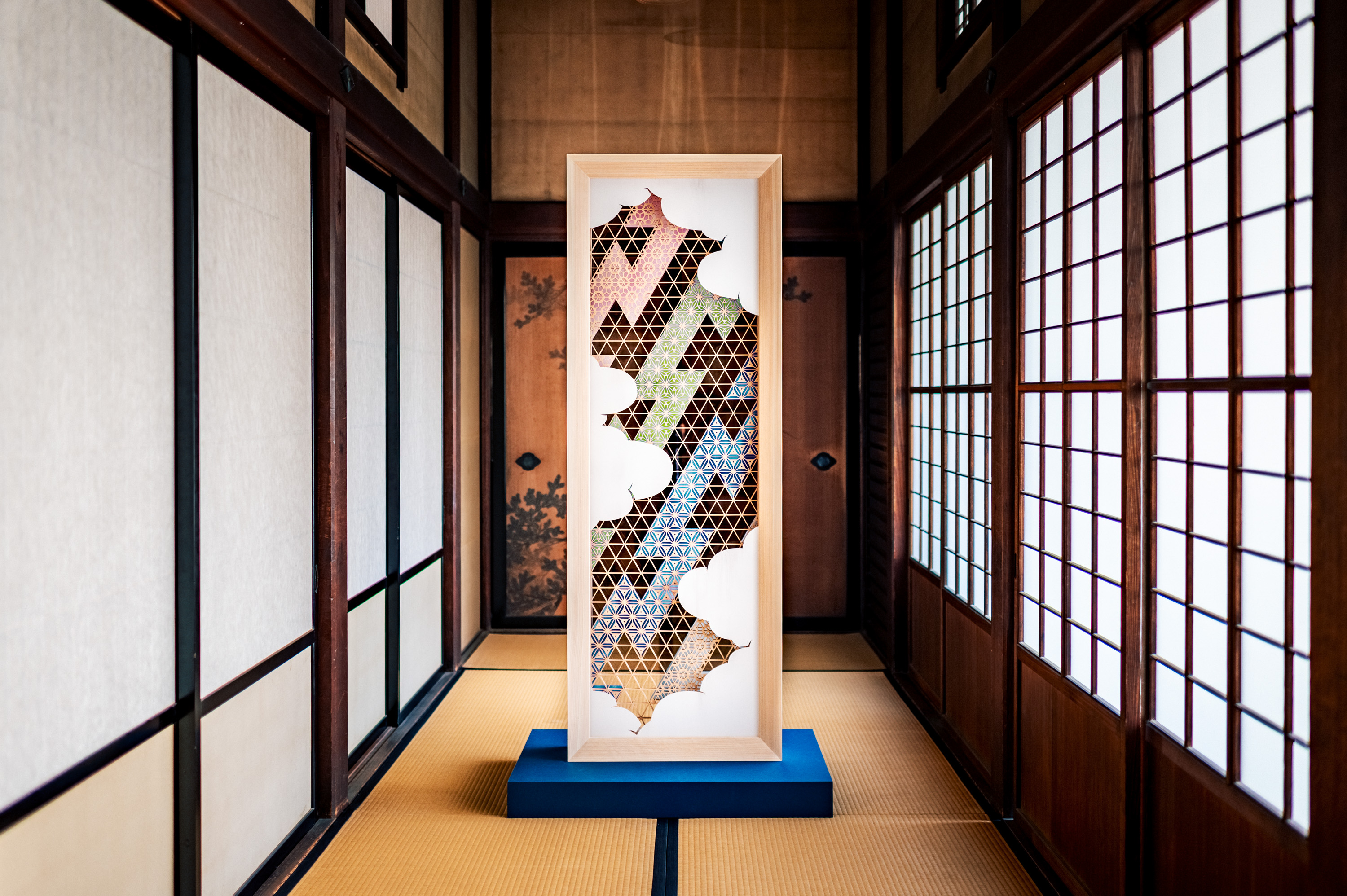 To Tatehana’s mind, the decision to host the exhibition in such an important national property is underscored by his belief that “the act of viewing the exhibits in such a historic building itself leads to an experience that goes back and forth between past, present and future.” Indeed, as we walk around the house, and thus the exhibition, the antiquated atmosphere of the space certainly contributes to the overall effect; the history that emanates from the walls dovetails the traditional practices that have informed Tatehana and his collaborators’ works.