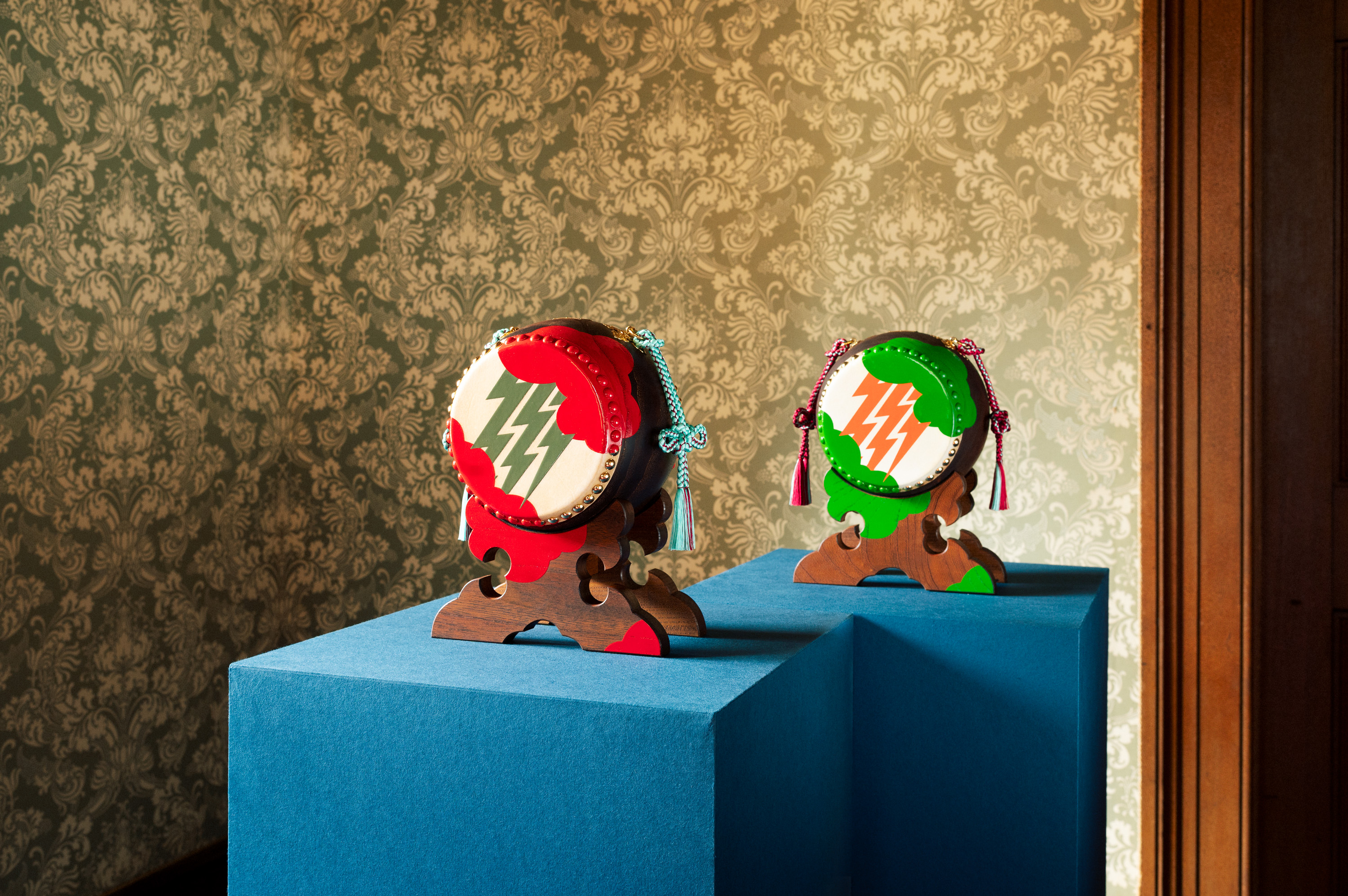 The exhibited works themselves, each made in collaboration with national industry businesses, range from variations on Tatehana’s legendary shoes, to Edo-style fans, hand-crafted Hake brushes, Taiko drums and even Kinkarakami Institute wallpaper. Tatehana explains how this sense of collaborative work took various forms during the conception of the exhibited works.