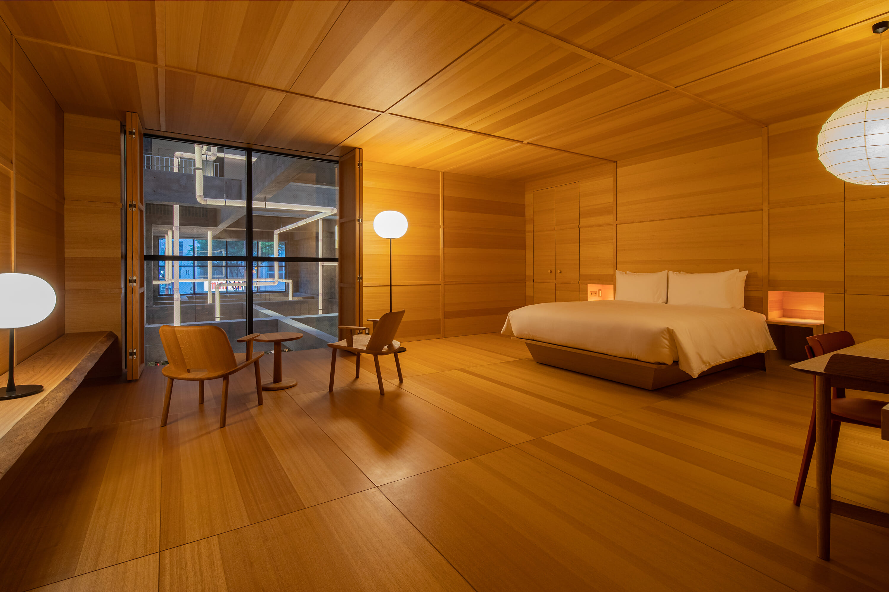 With some select collaborators, the work expanded to the design of one-of-a-kind rooms. “The Jasper Morrison and Michele De Lucchi rooms were created by the world’s best designers and I think we were able to create a dense space in this hotel,” Fujimoto says.