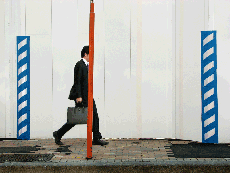 It does take a close observer to catch these moments, and Bruno Quinquet is one of them. The head of the tongue-in-cheekily named Bureau D’Etudes Japonaises (Bureau of Japanese Studies), Quinquet’s most well-known work is the “Salaryman Project,” a collection of photographs that capture these sometimes mocked, oft-misunderstood workers in scenes that evoke humor, loneliness, and the passing seasons of an urban sprawl. They are also images of startlingly brilliant composition, employing odd angles, clever reflections, and adhering to a rule that you wouldn’t expect to be obeyed in street photography: you never see the full face of his subjects.