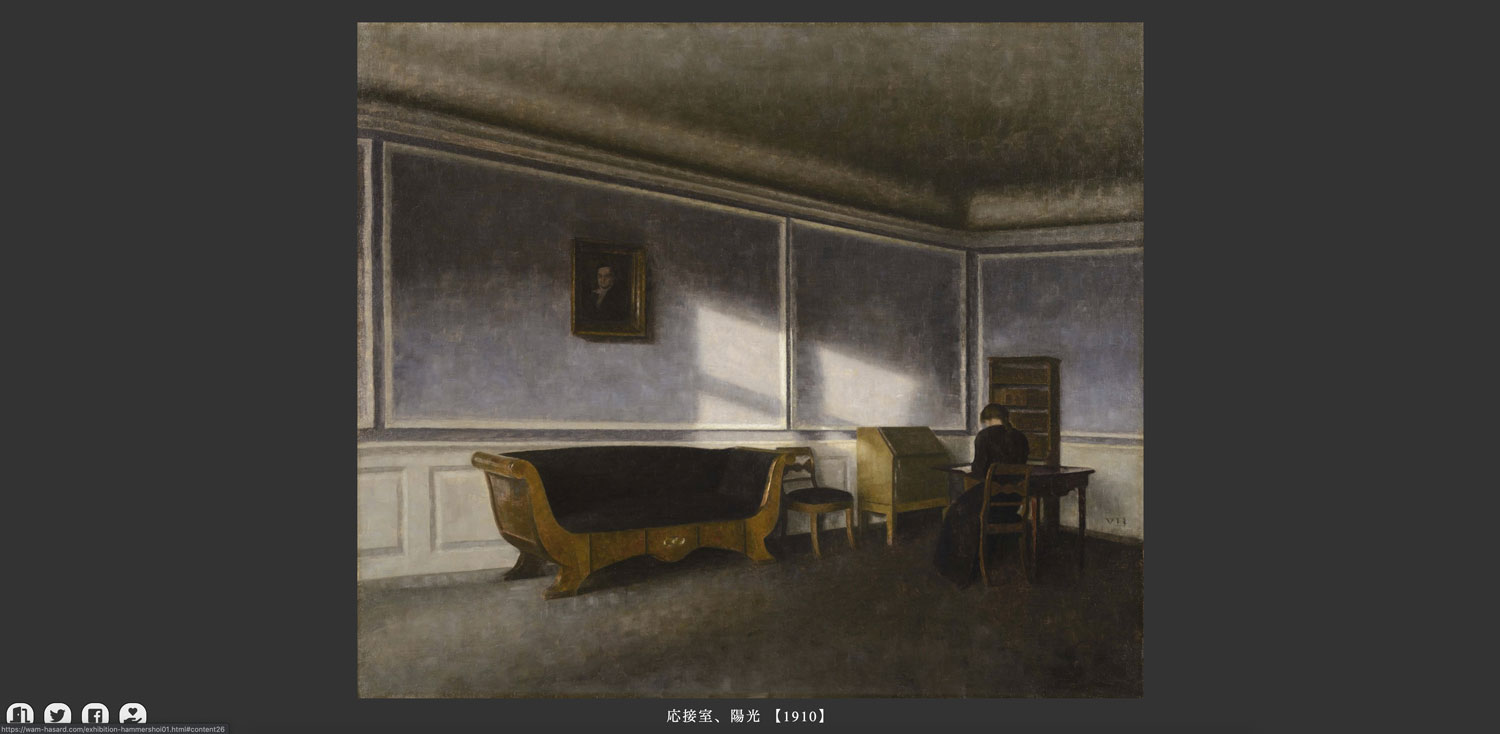 Vilhelm Hammershoi was a Danish painter active at the end of the 19th century. He mostly painted interiors in muted tones. If his paintings feature a human being, it is usually his wife, often painted from the side or behind. Being a man of the city, though, his main inspiration was architecture and its interaction with light.