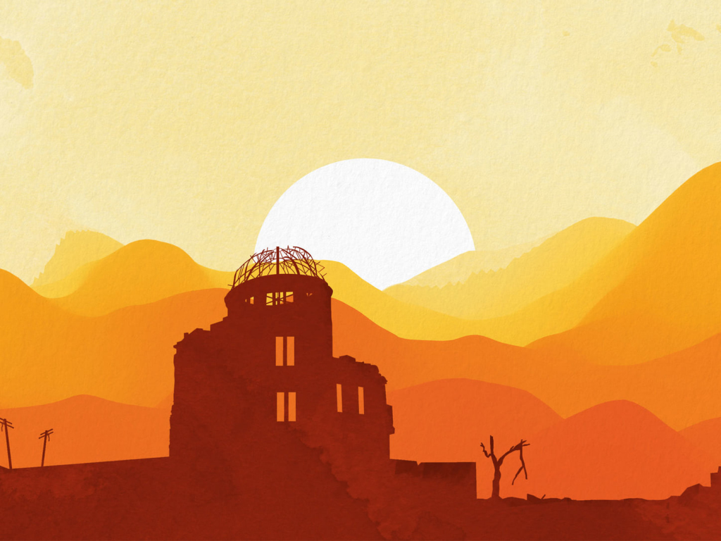 Bun Hashizume at the Atomic Bomb Dome in Hiroshima. Photo by Matsuura Yasutaka