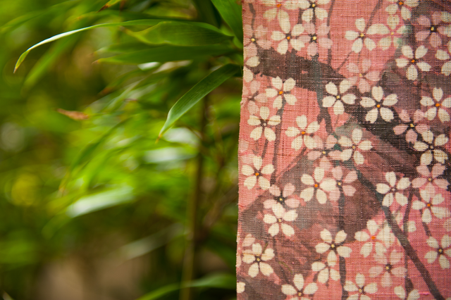 Tao creates Japanese decor through traditional dyeing techniques using natural materials such as kakishibu (persimmon extract), minomushi (cocoon material commonly used in kimonos), plant dyes, and rice powder. Each project is hand-treated and crafted by Taō, an attention to detail that has earned him the honor of being named an official Heritage Artisan of Japan in 2008.
