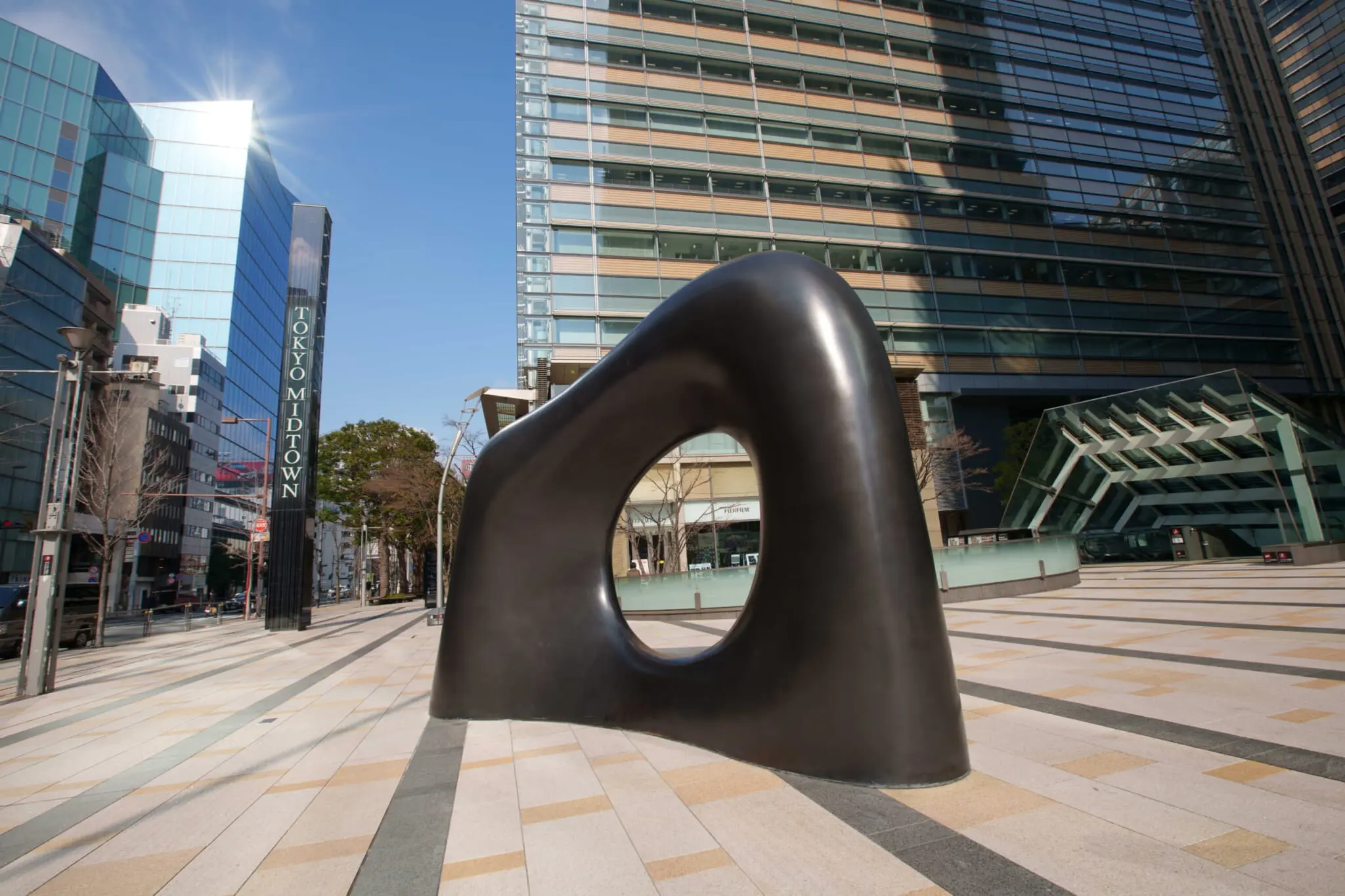 Located on the first floor of Tokyo Midtown, right above “Mindful Heart” on the floor below, is another striking Yasuda sculpture created in 2006. “Key to a Dream,” known as “Myomu” in Japanese, is located at the entrance of the plaza and has become almost like a symbol of the complex. The magnificent bronze sculpture is often used as a place to meet. Despite being surrounded by skyscrapers, it manages to stand out.