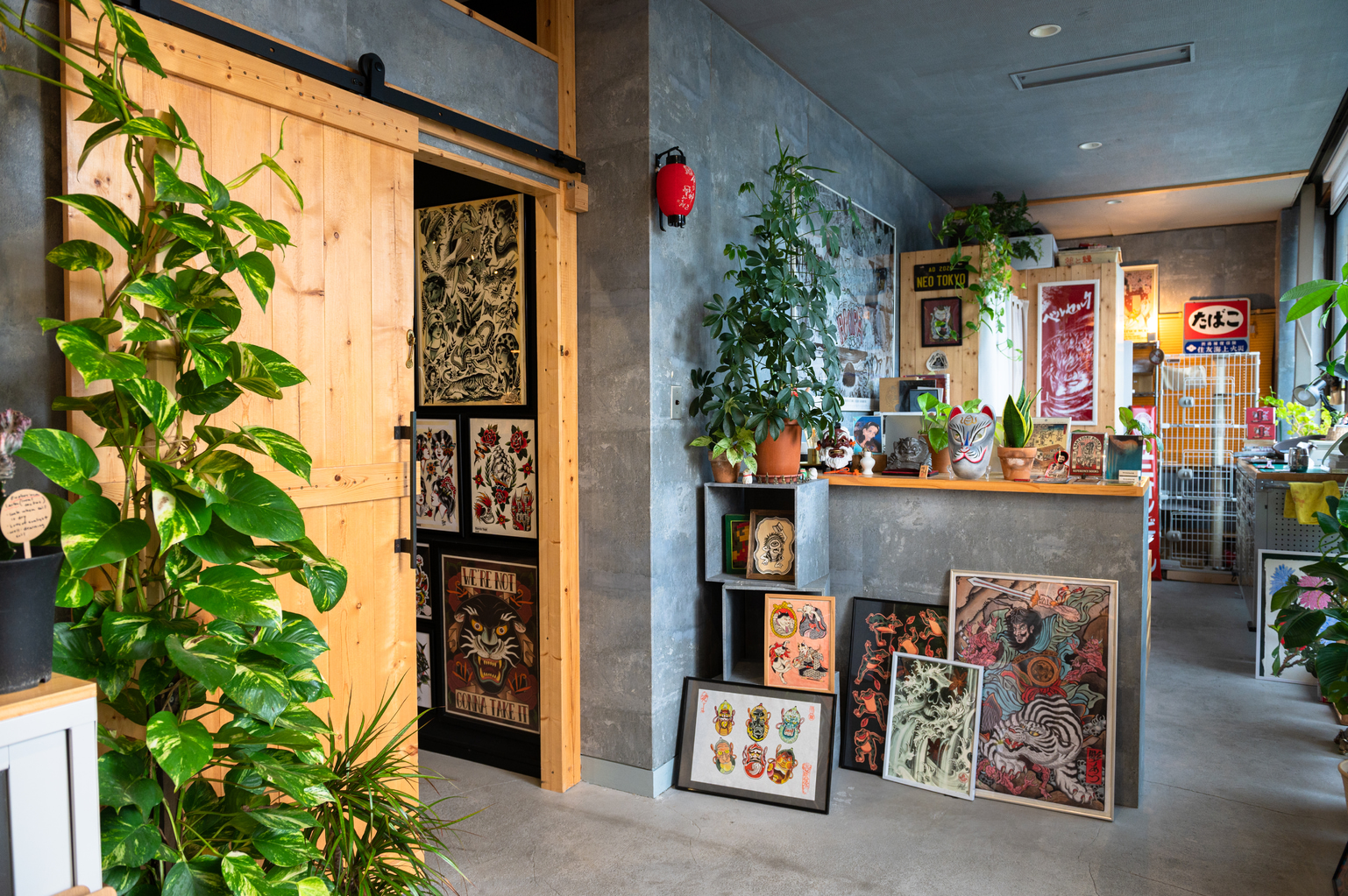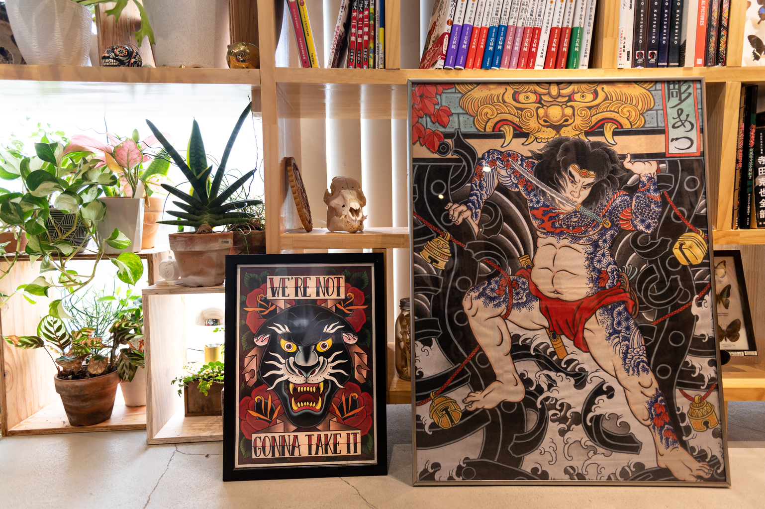 So, they did the only thing they could do: isolate and prepare the new property, while hoping for the best. They constructed bookshelves, tables and walls, redesigning the formerly musty gray office space into a contemporary locale for both their businesses: Company Tattoo (stylized Cömpany as a nod to British band Motörhead) and Bakezori Books. The shops face each other, connected by a communal area that displays merchandise and art prints. It’s the perfect gathering place where visitors can hang out, buy a few books, get some art — or even make an appointment for some new ink.