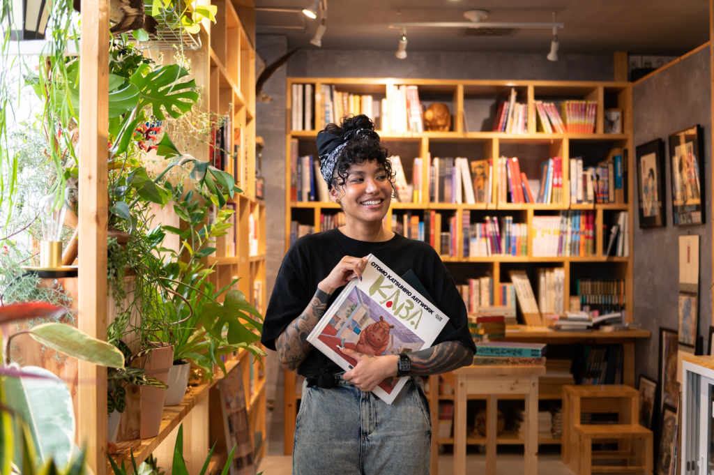 As Odagaki talks about her tattoos, she mentions that many of them depict Japanese yokai, or folkloric supernatural entities. In a world where almost anything can be mass-produced, old or broken goods are tossed aside instead of fixed. The store mascot, a bakezori — a lone straw sandal yokai that came to life when it was thrown away — symbolizes Odagaki’s relationship with the books that decorate the shelves in her store. She says, “My shop sandal is a perfectly good sandal that became trash. In the same vein, my store is full of perfectly good books that people didn’t want anymore. They would have been trash. And books are not trash. Now, they can become useful in someone else’s hands. Instead of letting them become yokai, I would love to see them on your bookshelf.”