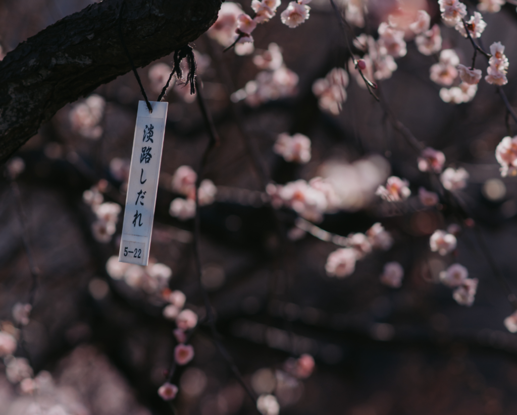 Tenjin shrines are great places in general if you wish to enjoy plum blossoms, since the god of learning, after whom the shrines are named, had a love for plum blossoms. This means that many Tenjin shrines have plum groves on the premises. The trees also bloom during the time of exam results, so the association between plums, Tenjin and study success is strengthened.