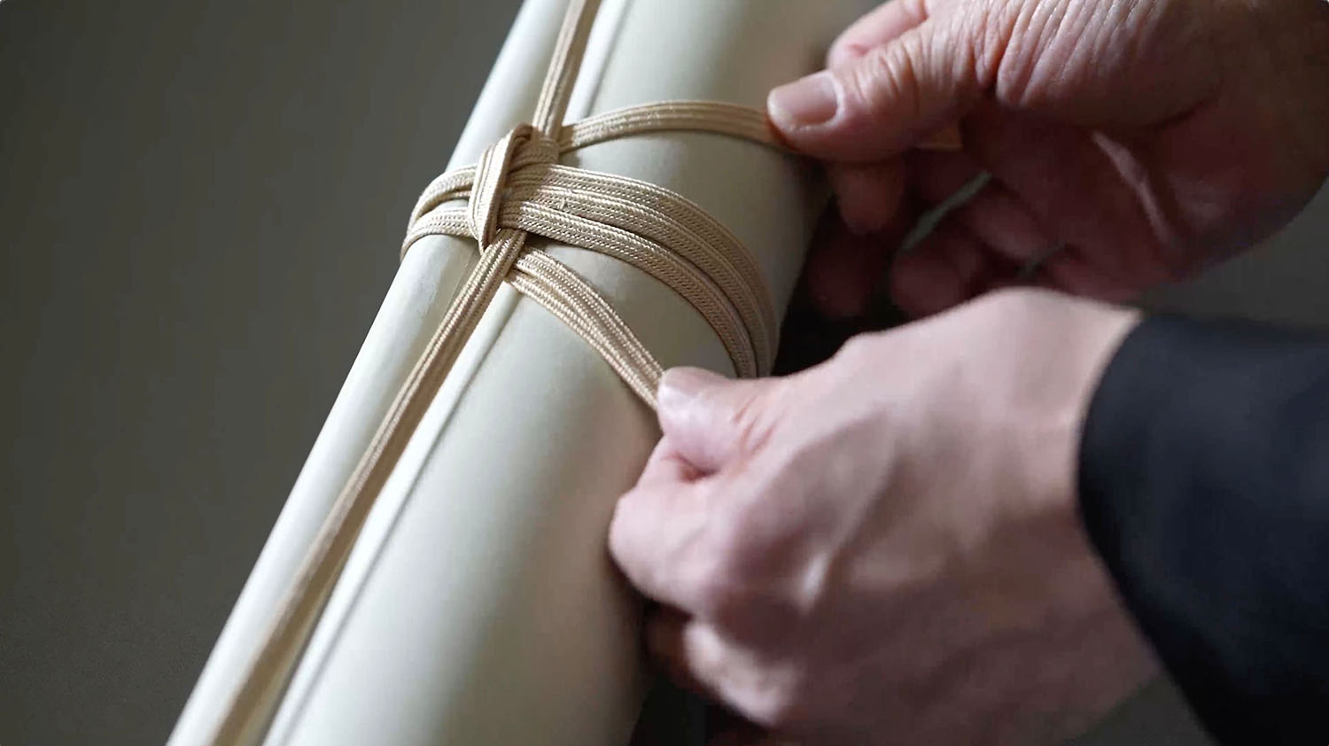 The paper for the two scrolls is handmade washi paper from Mino, Gifu Prefecture, while the work is printed using collotype printing. Currently, there is only one company in the world that can perform this large-format color printing. It’s a workshop in Kyoto that has mainly produced reproductions of national treasures and important cultural properties.