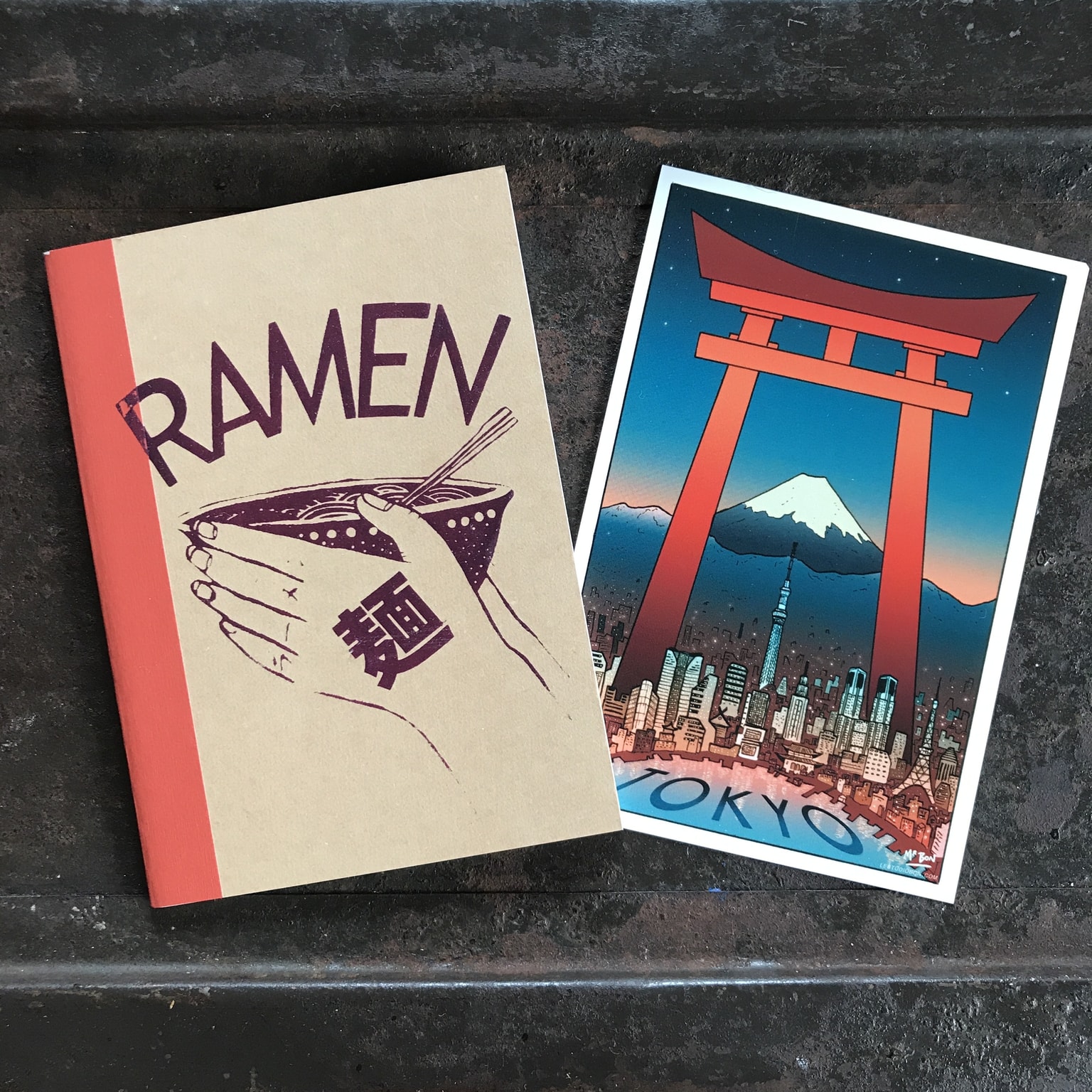This week, TW and Freund are giving away one handprinted notebook featuring an original ramen illustration as well as a postcard-sized poster from the Bon Voyage Japan series.