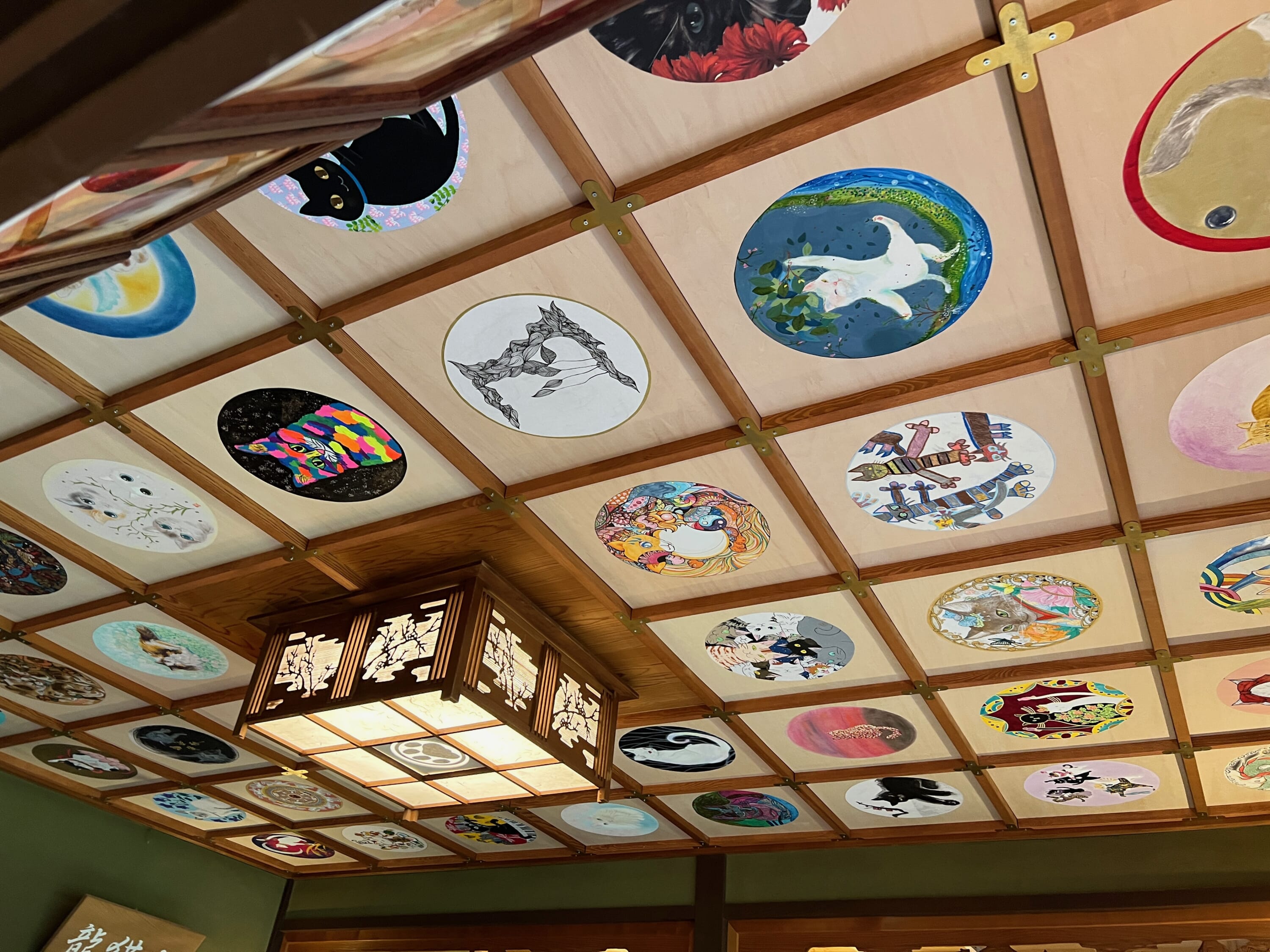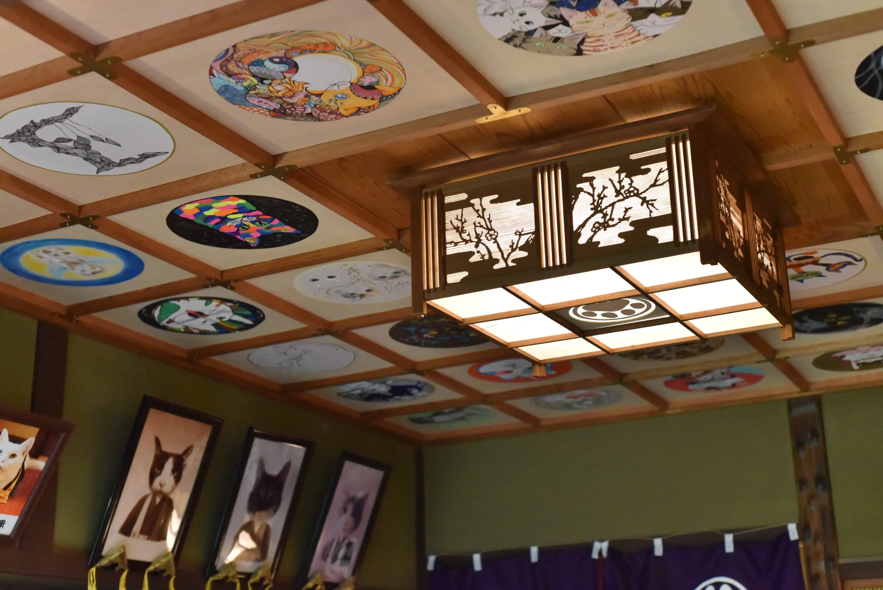 The ceiling paintings are also well worth looking out for. The Kaya family collected cat-themed artworks from 44 painters through social media, which they used to create the pattern for the ceiling murals of the main hall. From the traditional to the abstract, each artwork encompasses various artistic techniques that showcase the artists’ creative brilliance.