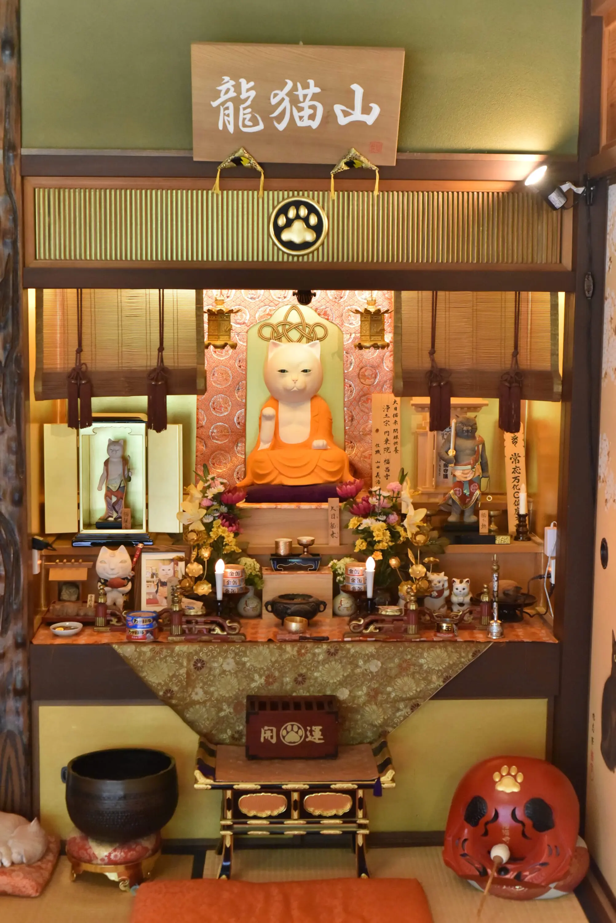 Toru, the father of the family, also has a professional background as a painter for shrines and temples. Building a cat temple subsequently seemed like an obvious choice. Nyan Nyan-ji opened to the public in 2016.