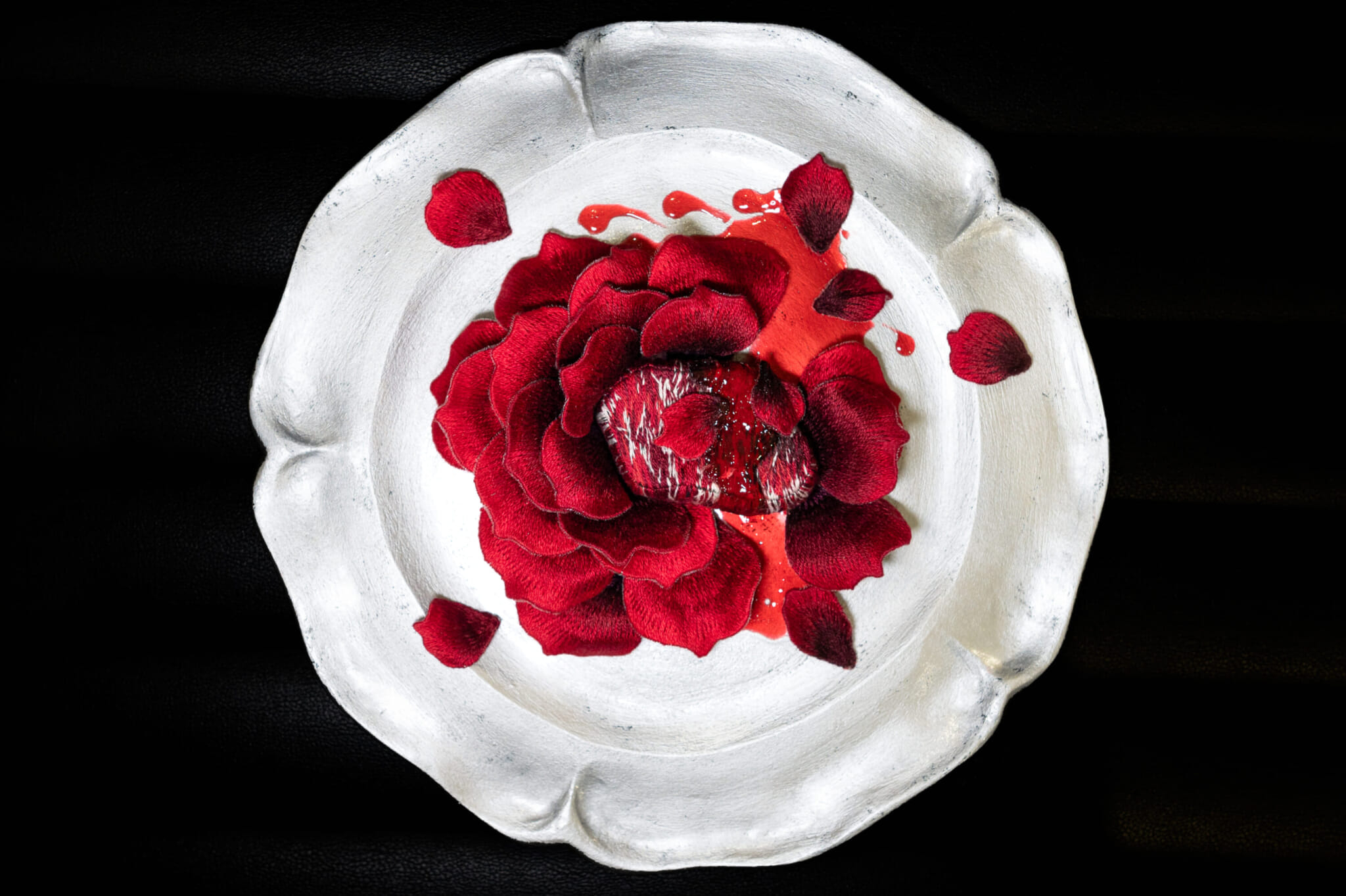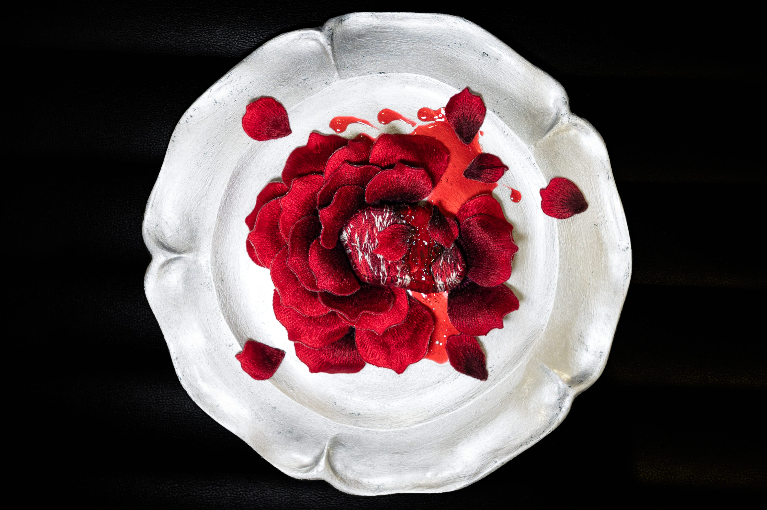 The rose piece was the very first thing I wanted to make. In Japanese, “bara” means rose but is also a cut of meat, so I always had that at the back of my mind as an idea. There is also the association of “bara” murders — where the body is dismembered — making it “bara, bara, bara …”