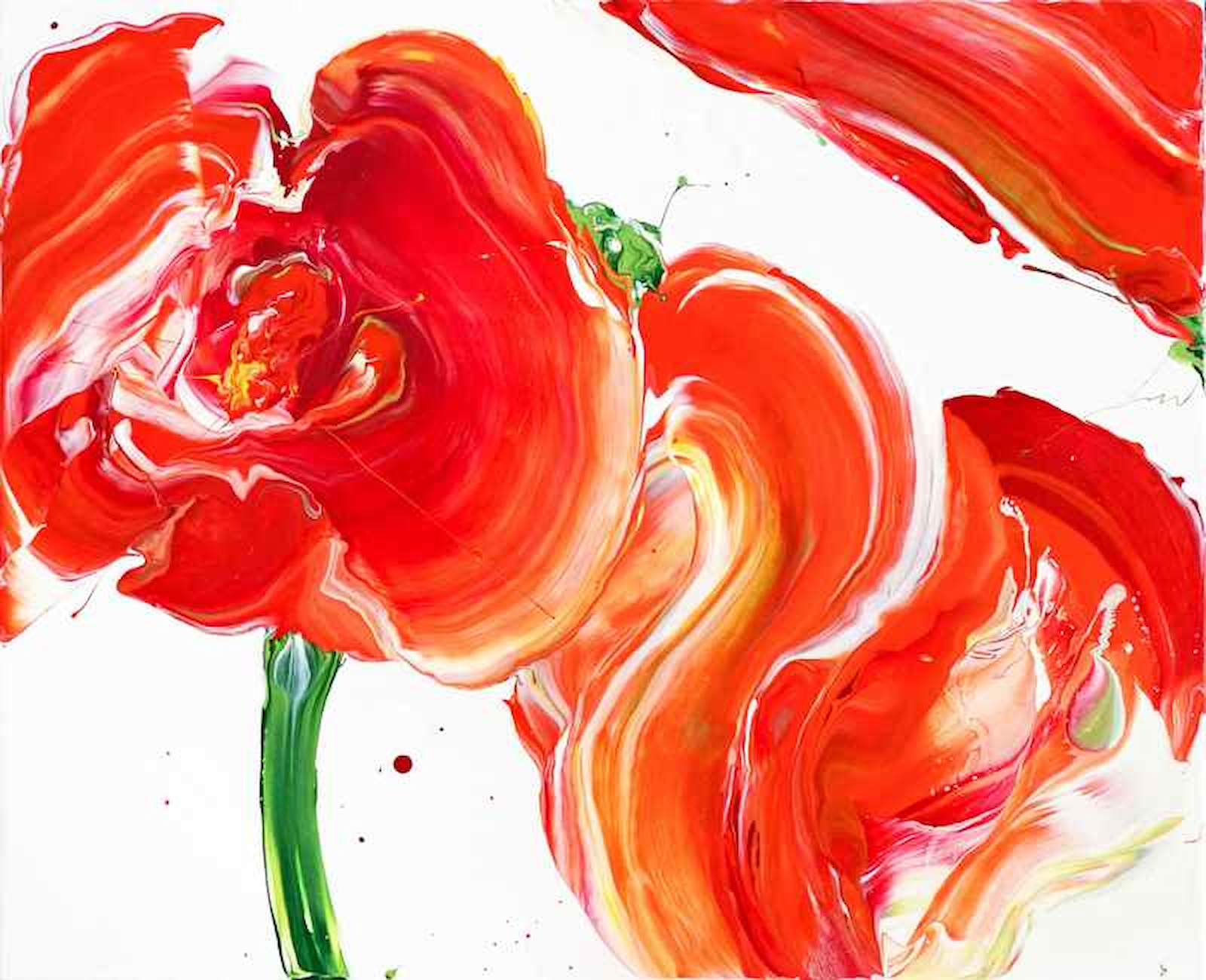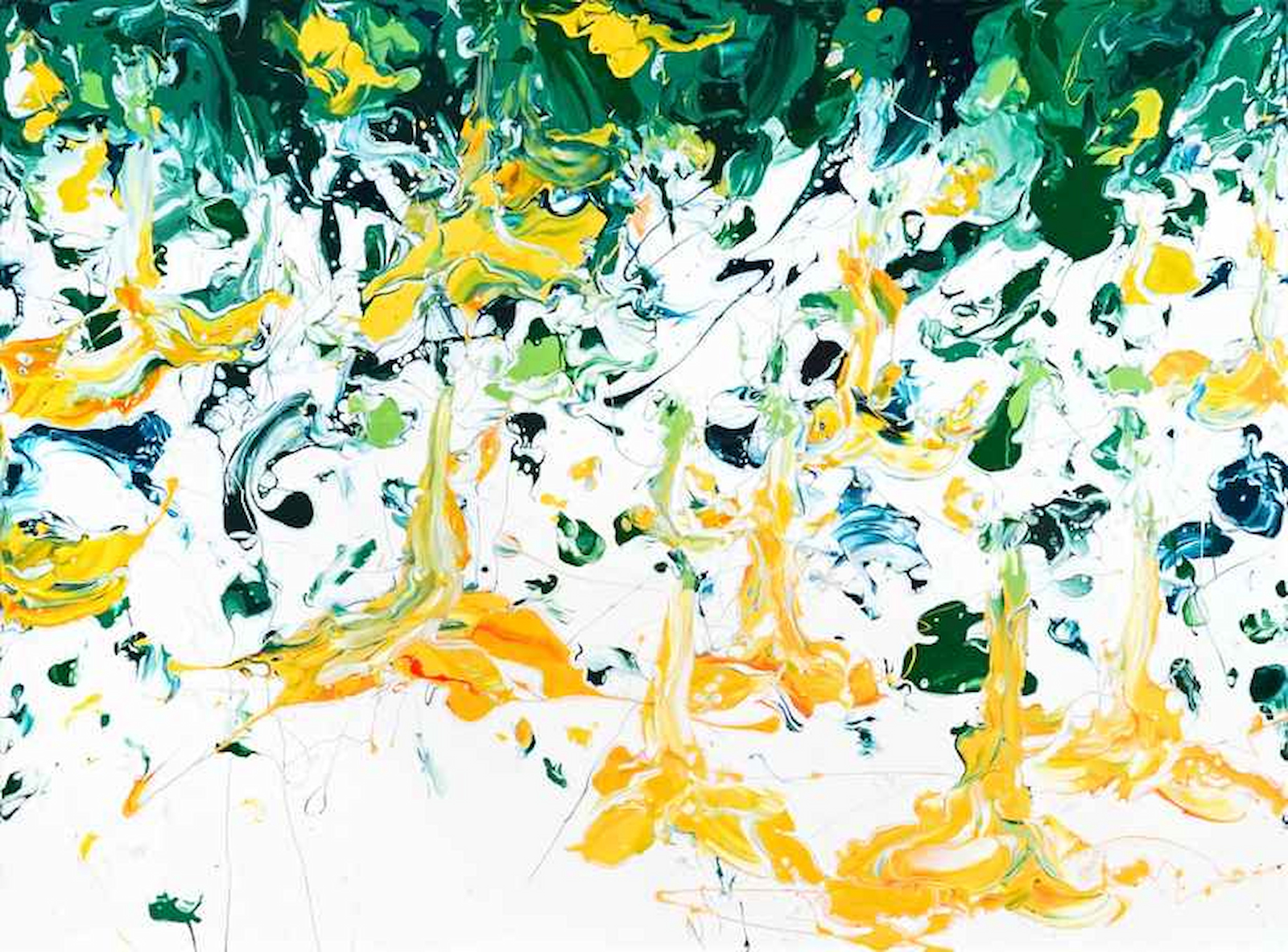 Hailing from Saga Prefecture, Yurika Kinoshita is known for her vibrant abstract paintings of flora and fauna. Raised in a family of florists, Kinoshita feels personally attached to the beauty and vivacity of flowers, as they color memories of her childhood with warmth and light. These intimate roots are perhaps echoed by her intuitive painting technique: using her bare hands, the artist traces the free and organic movement of plants. This sensorial approach is instrumental in transferring images from her past onto the canvas.