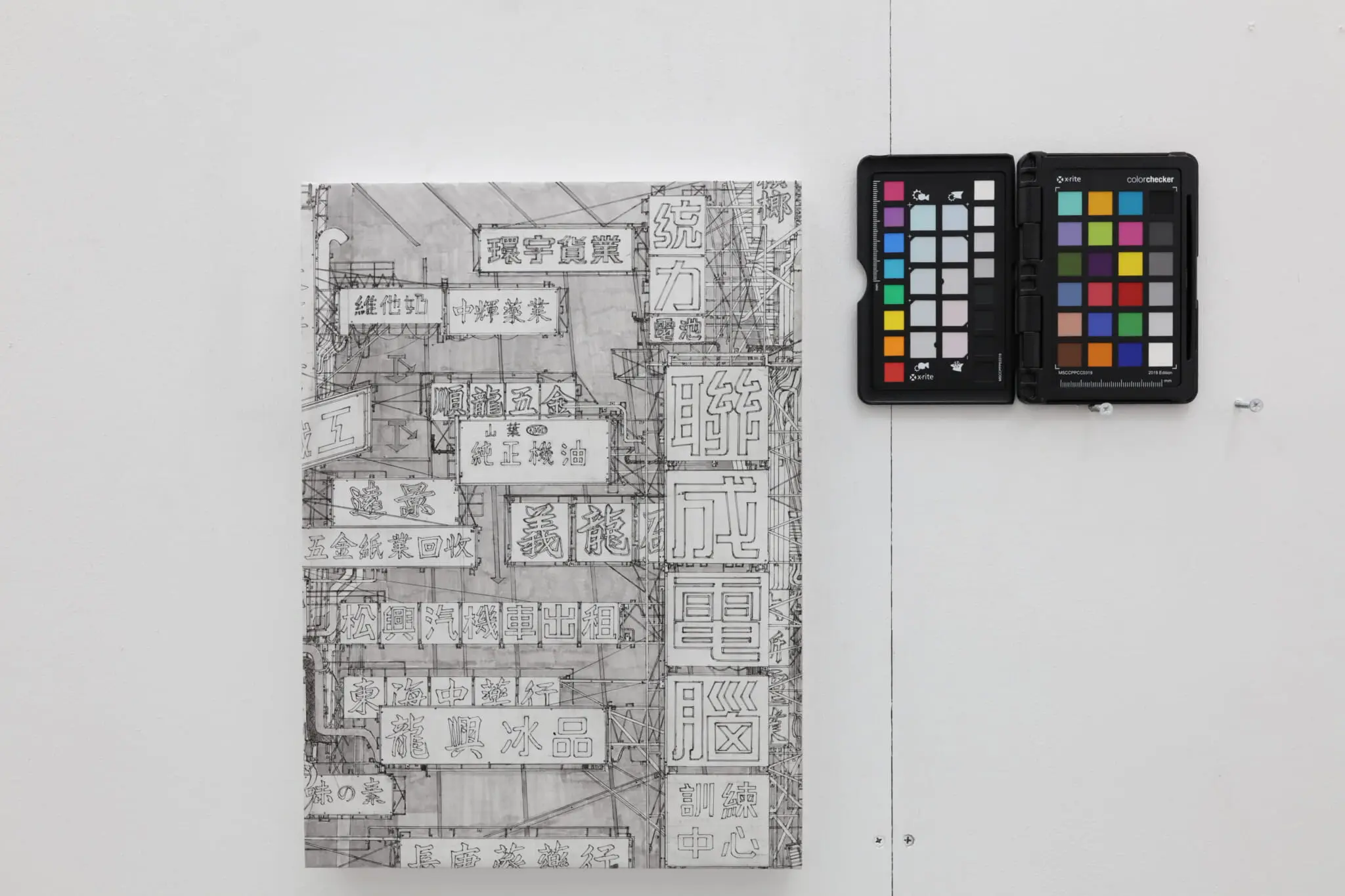 Tajima’s cityscapes are reminiscent of cities we know, but they don’t exist. “Many of the kanji signs in Chinese are from real signs, though,” he shares with me. The artist draws inspiration from actual cities in China, Taiwan and Hong Kong but comes up with new buildings and compositions. He has traveled to many metropolises in mainland China, including Guangzhou, visited Hong Kong more than 10 times and Taiwan more than 30 times. He also lived in Tainan, Taiwan, for a time studying Mandarin Chinese.