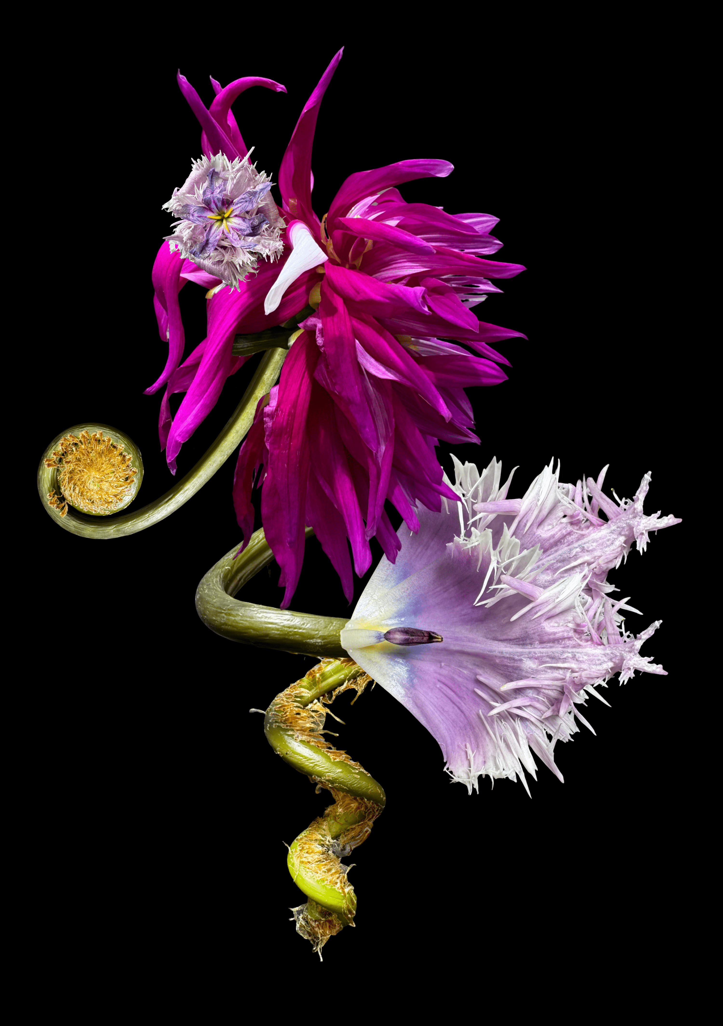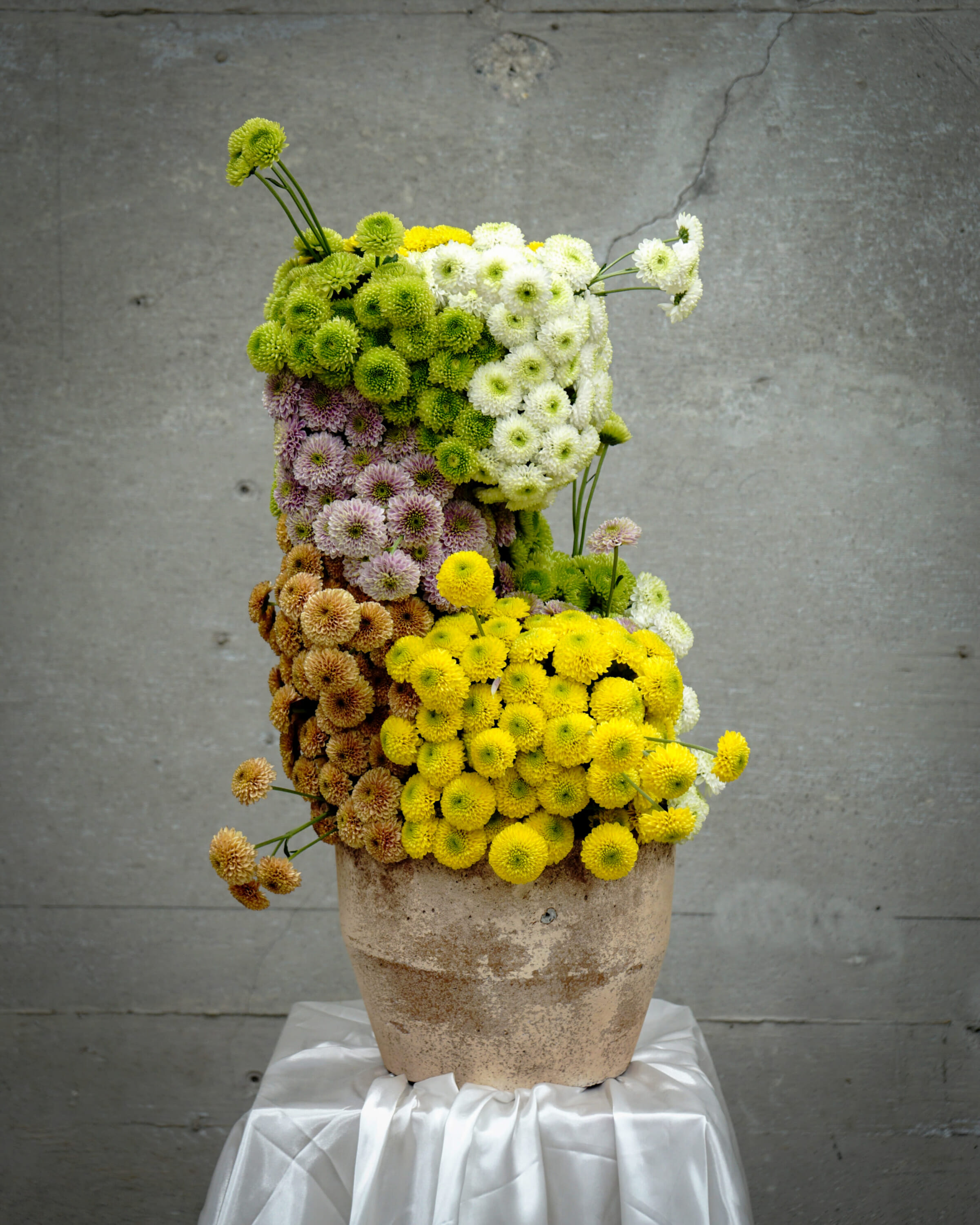 Rather than pretend that this isn’t happening, the artist incorporates that discomfort into his aesthetic. The beauty, he believes, is born not just from the bloom, but from the tension and unease found in the act of arranging.