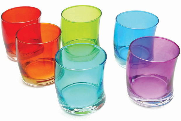 two: ‘Swing’ curved tumblers, bring gorgeously bright colors colors to your table. Colors include orange, light blue, purple, red, blue, green, in a set of 6. Perfect for a house warming or bridal gift.