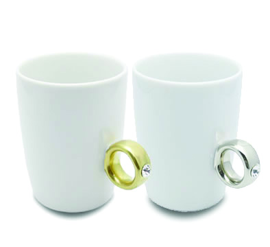 five: 2 Carat Cup is a fun product certain to get a good reaction from a loved one. The porcelain cup is packaged in a black velvet box, and only when the cup is removed do you see the hidden gold or silver handle, embedded with Swarovski crystal, giving it the appearance of a sparkling ring. Designed by Yusuke Fujinuma.