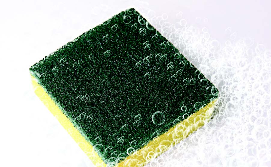 Sprinkle a small amount of baking soda on a damp sponge as a cleaning scrub to gently scour your sink and faucets. For tougher jobs, use a thin paste of baking soda and let it stand on the affected surface for several minutes.