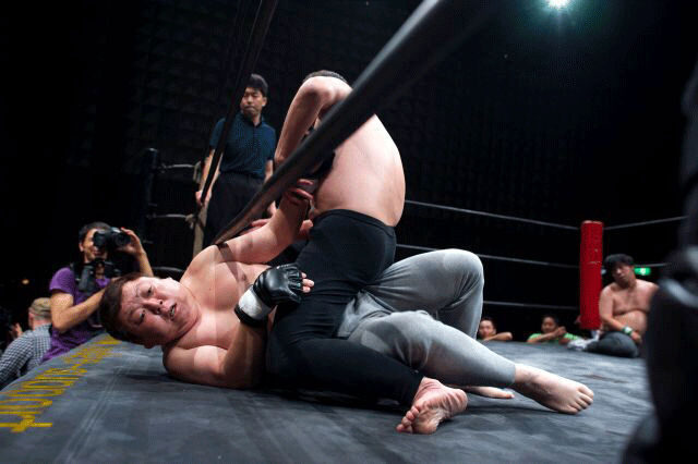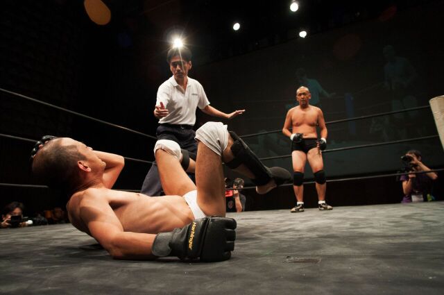 Tensai Marubon (meaning “Roly Poly Genius”) is overpowered by an unnamed opponent. Credit: Alfie Goodrich