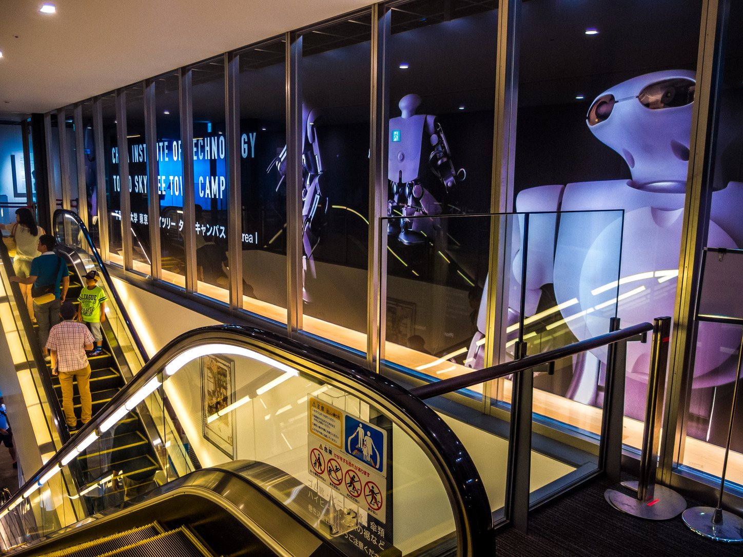 Sure, a ride from Toyosu to Shinbashi on the self-driving Yurikamome Line can evoke images of Blade Runner (especially after the sun has set) but let’s be honest: outside the otaku nations of Akihabara and Nakano, the closest you get to true-to-life SciFi are the new vending machines that have replaced real bottles behind a glass with a huge touch screen depicting same bottles. Oh, and the taxis with the automated doors.