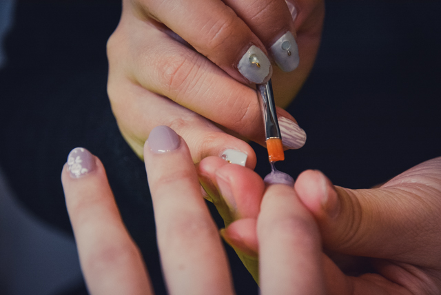 Her portfolio is remarkable. The intense colors, array of styles, and 3D nails are other-worldly. It only takes her a couple of hours to think of a design for painted nails. Sculpted, 3-dimensional nails can take up to two weeks, because of the sculpting, sanding, and drying stages she goes through. They aren’t her favorite, but she does them for competitions. Her wedding nails, portraits, and originals are all in a little box, haphazardly stored, but treasured nonetheless.