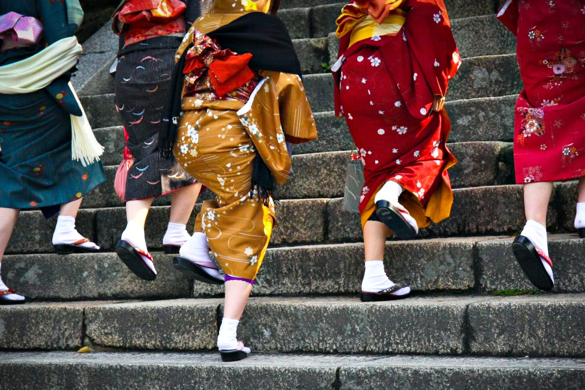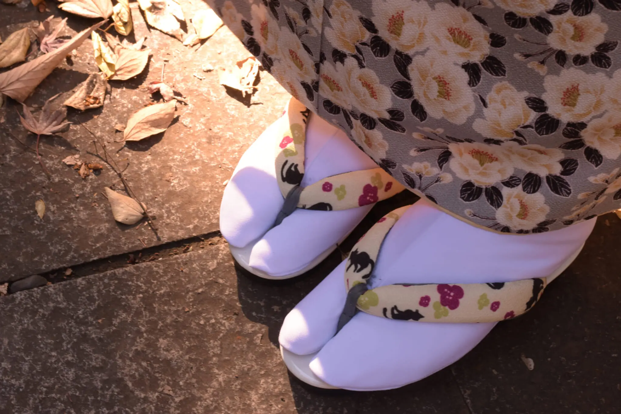 There are endless ways to accessorize kimono and yukata, including the obijime, a decorative rope that lies on top of the obi. You can pair a kimono with zori, — formal sandals — and tabi socks, but it’s becoming increasingly popular to wear a kimono with modern shoes, like a pair of boots. With the yukata, it’s common to wear a pair of geta sandals, but you shouldn’t wear the fancy zori with them.