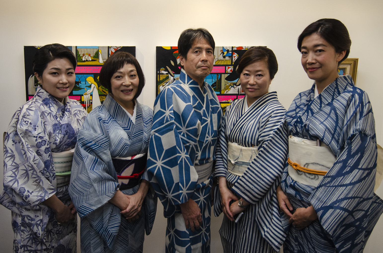 Steps away from Ginza’s upmarket department stores in Komparu-dori, Iseyoshi recently launched the free art gallery Wada Fine Arts | Y+ + on the second floor. The gallery owner, Iseyoshi’s CEO Yumie Chitani, has 30 years of experience as an owner and art director, and even exhibited at the illustrious Art Basel show. She collaborates with Japanese and foreign artists to display their work, with exhibitions revolving about once a month. The smartly curated gallery combines traditional Japanese craftsmanship with modern art, and the interaction between viewer, space and art cultivates ideas and inspiration for visitors, exhibitors and Iseyoshi’s kimono designers alike.