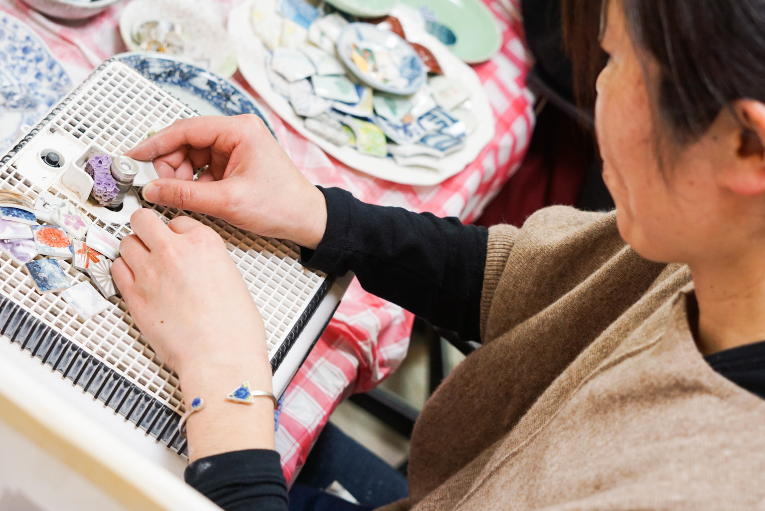 Inspired by a similar project in China, Takamoto created a company that crafts jewelry from the broken pottery scattered about Ishinomaki. She enlisted women she met at the bus stop to be her first employees.