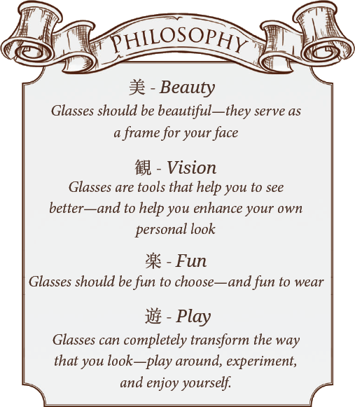 Owner and founder Taigo Kamuro was inspired on his visits to European tradeshows by the bright colors and creative, playful frame styles that been produced on limited production runs. He brought back some of the new designs for his store in Ginza, and he was astonished by their popularity back home. People were dissatisfied with the tired and unimaginative choices available at the time, and they were looking for ways to have fun with the glasses they had to wear every day. Kamuro puts it simply: “Our customers were ecstatic.”