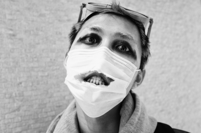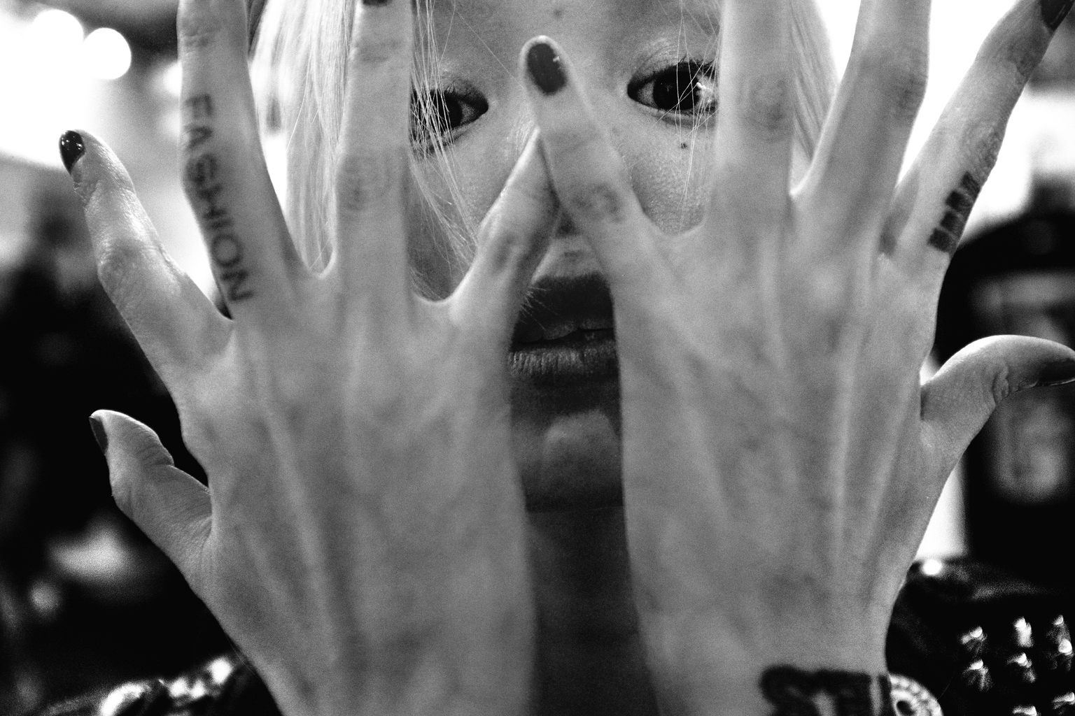 I also love this shot by Tatsuo Suzuki of 99percentis, who is a Korean designer based in Tokyo. The face mark is an identifiable element predominantly associated with Japan. He always rips the mouth out which makes a total punk statement.